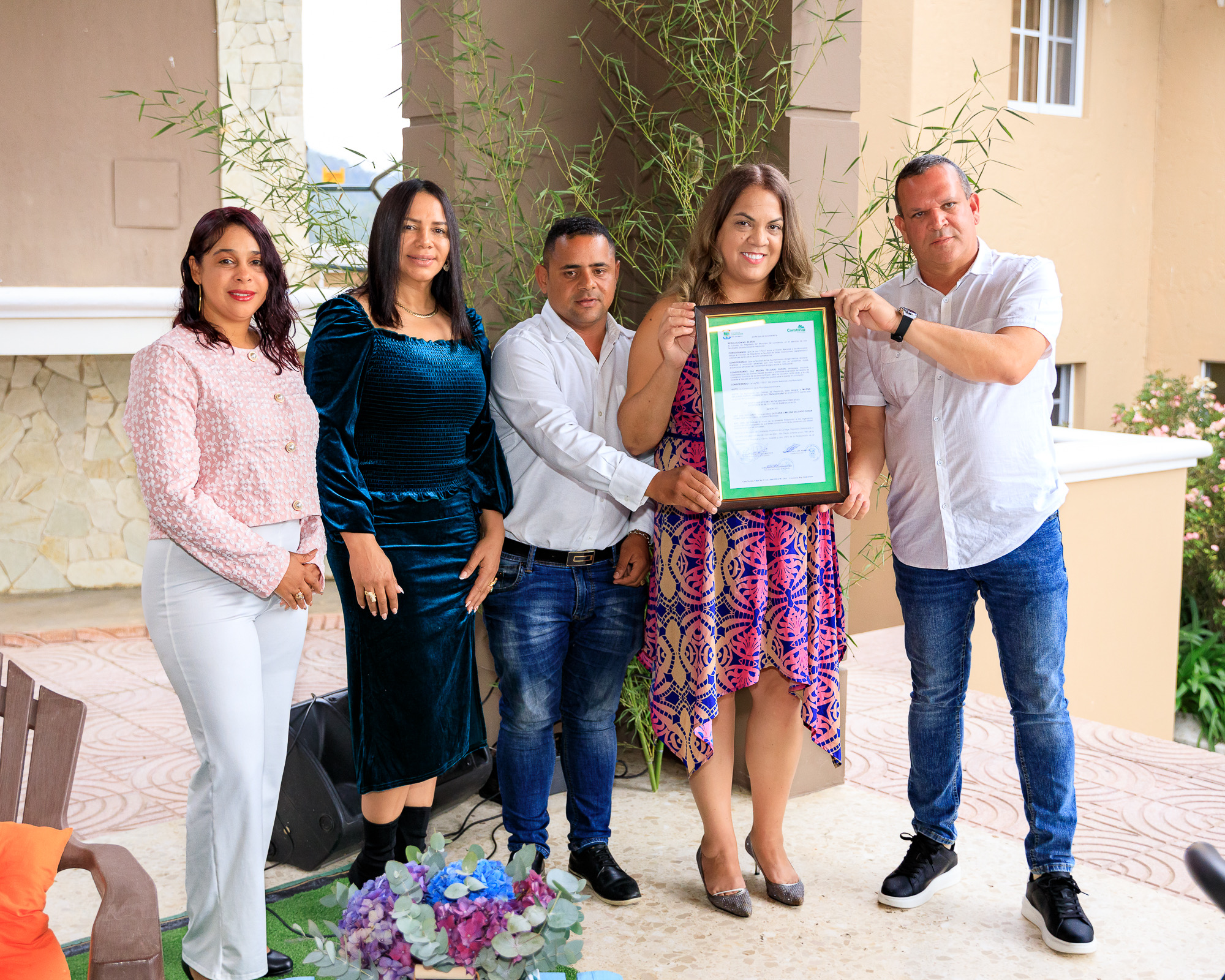 Durante el acto de presentación, el alcalde de Constanza, Francisco Marte Hernández, declaró a Milena Delgado como “Hija Meritoria” del municipio, resolución avalada por el Concejo de Regidores.