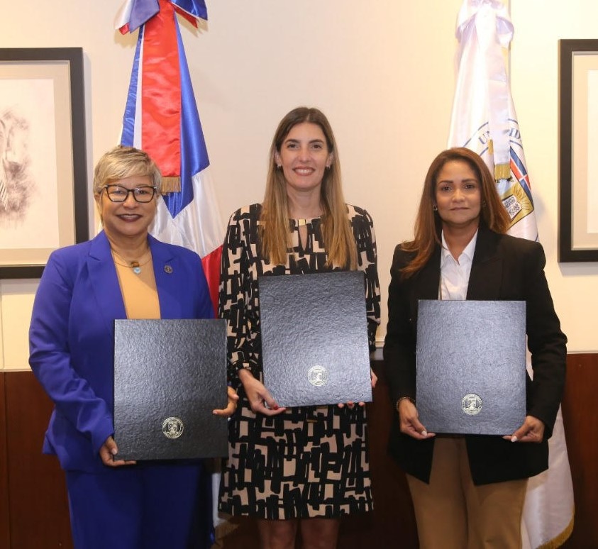 La firma contó con la presencia de Cristina Zapata, directora de la Escuela de Comunicación de UNIBE; Marien de Moya, encargada de vinculación de UNIBE; Milena Pozuelo, directora ejecutiva de ADORA; y Luis Alberto Perdomo, secretario de Educación y Cultura del CLD, entre otros representantes de las instituciones.