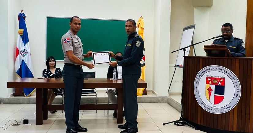 El acto de clausura estuvo encabezada por el rector del Instituto Policial de Educación (IPE), coronel Juan Félix Romero Rosario, acompañado del coronel Rafael de los Santos Céspedes, el teniente coronel Edgar Bido Sánchez y la doctora Aida Consuelo Hernández Bonnlly, en representación de la Pontificia Universidad Católica Madre y Maestra (PUCMM).