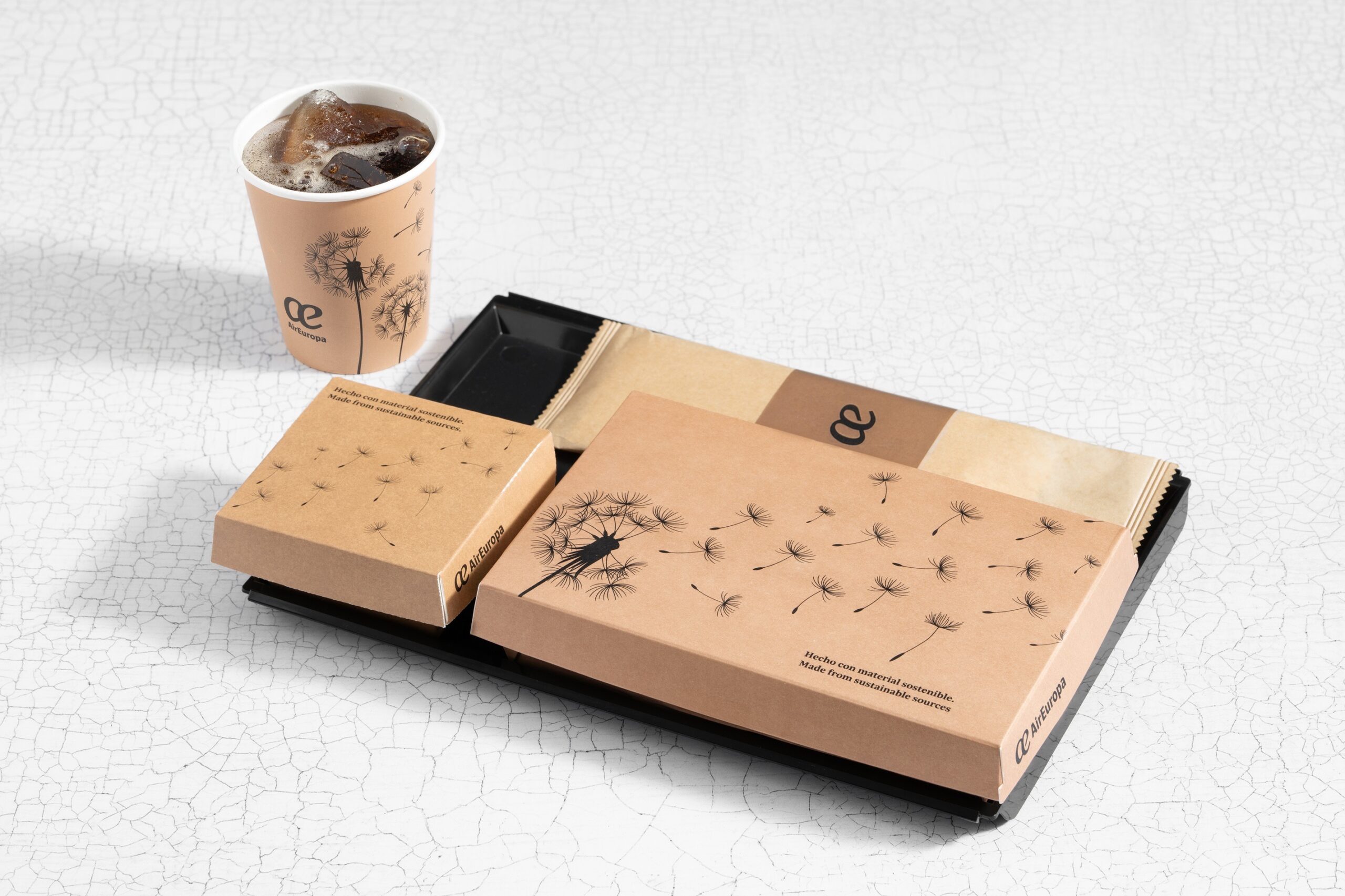 Desde este verano, la aerolínea española ha introducido bandejas fabricadas con materiales cien por cien reciclables y biodegradables, eliminando el uso de manteles de papel. Además, los vasos, envases de comida y cubiertos ahora son de cartón y materiales biodegradables, lo que refuerza el principio de circularidad en los vuelos.