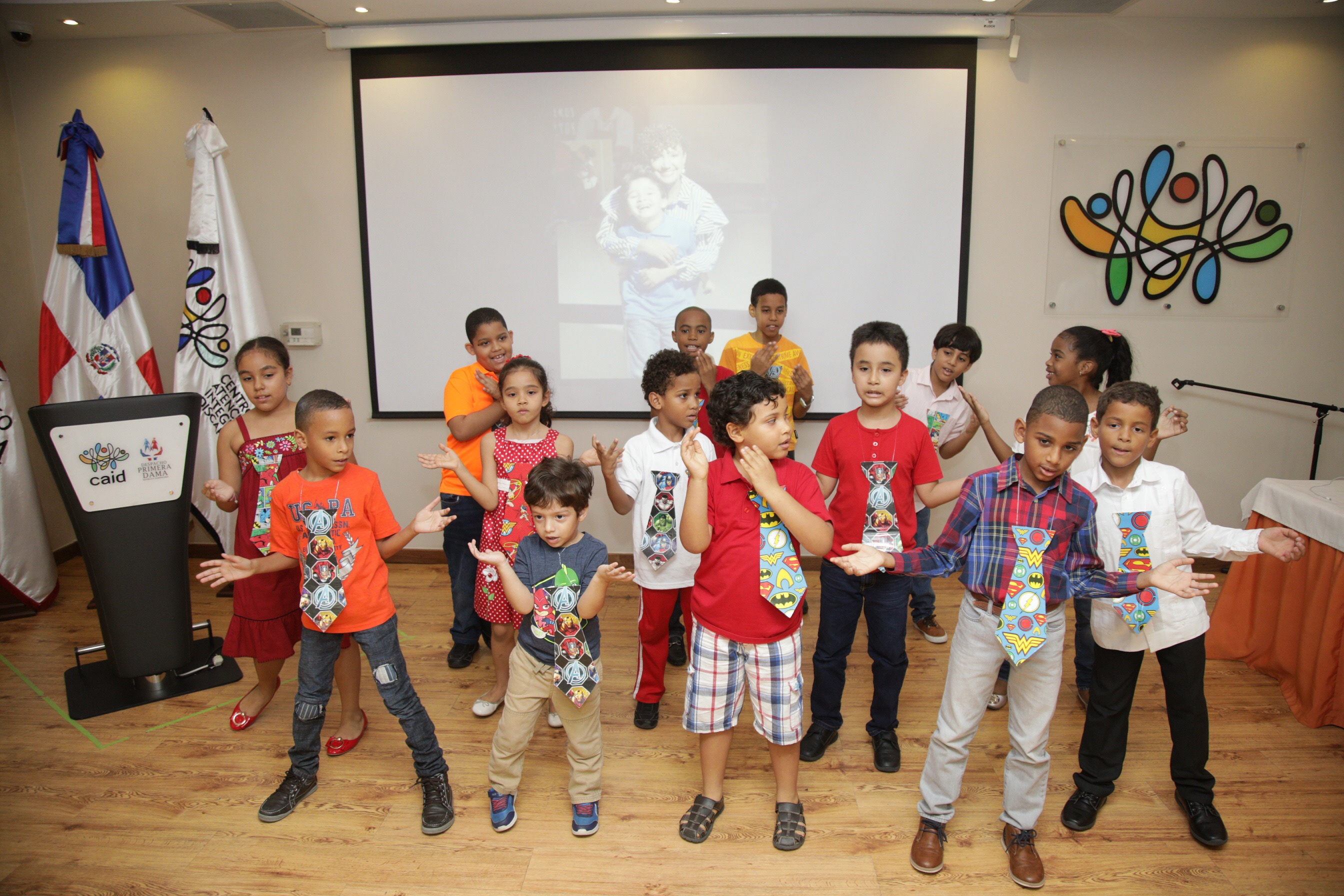 Entonando canciones, con bailes, dramatizaciones y mucha alegría, niños y niñas con Trastorno del Espectro Autista (TEA), parálisis cerebral y Síndrome de Down, celebraron el Día de las madres en el Centro de Atención Integral para la Discapacidad (CAID) Santo Domingo Oeste.