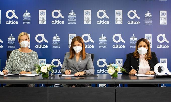 El acuerdo fue firmado por Ana Figueiredo, CEO de Altice Dominicana; Mayra Jiménez, ministra de la Mujer; e Inka Mattila, representante residente del PNUD en la República Dominicana.