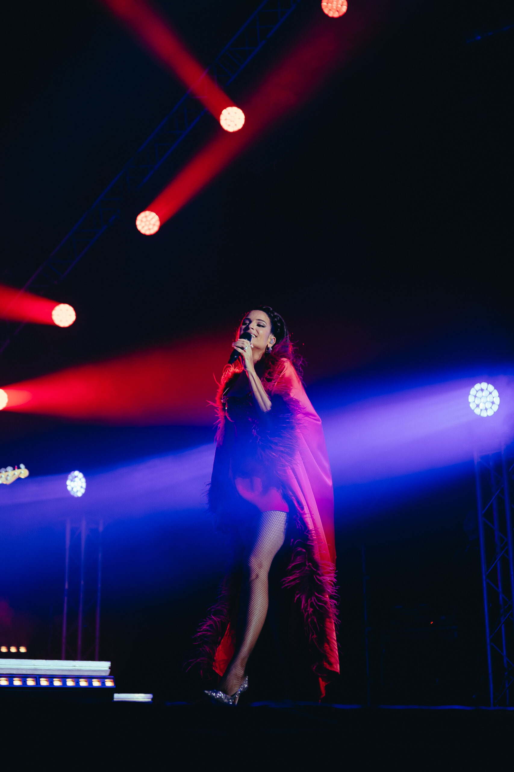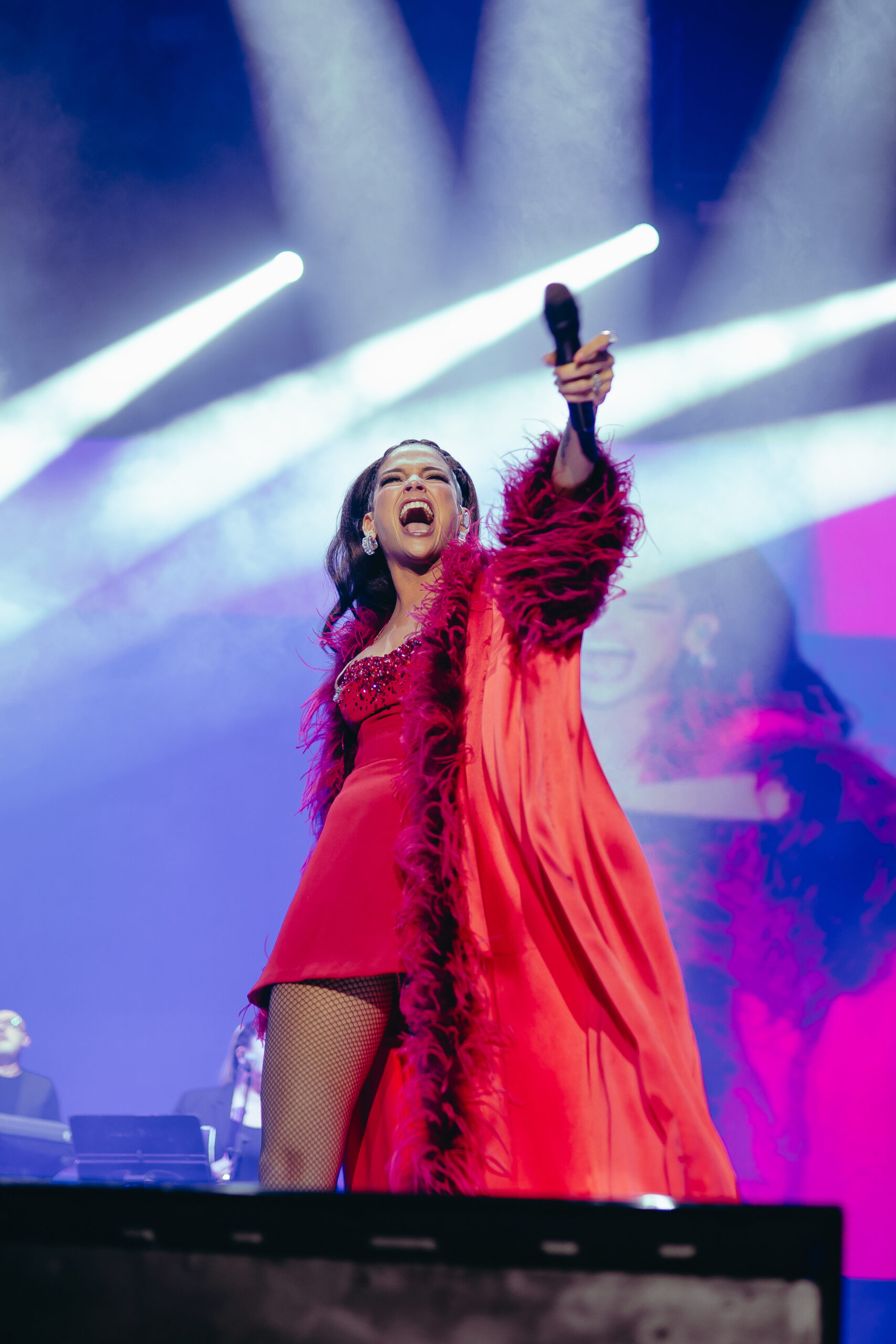 Ataviada en un outfit rojo satinado, la reconocida artista inició la velada con “Dónde irán”, desatando la euforia de todos los presentes. Le siguieron “Que te quería”, “Niña”, “Perdición”, “Tu peor error”, “Algo más”, “Daría”, “Recuérdame” y “Me muero”. Para luego hacer gala de su exquisito gusto por la moda con el segundo cambio de la noche: Un vestido de lentejuelas plateadas que hacía el match perfecto con sus altas botas blancas.