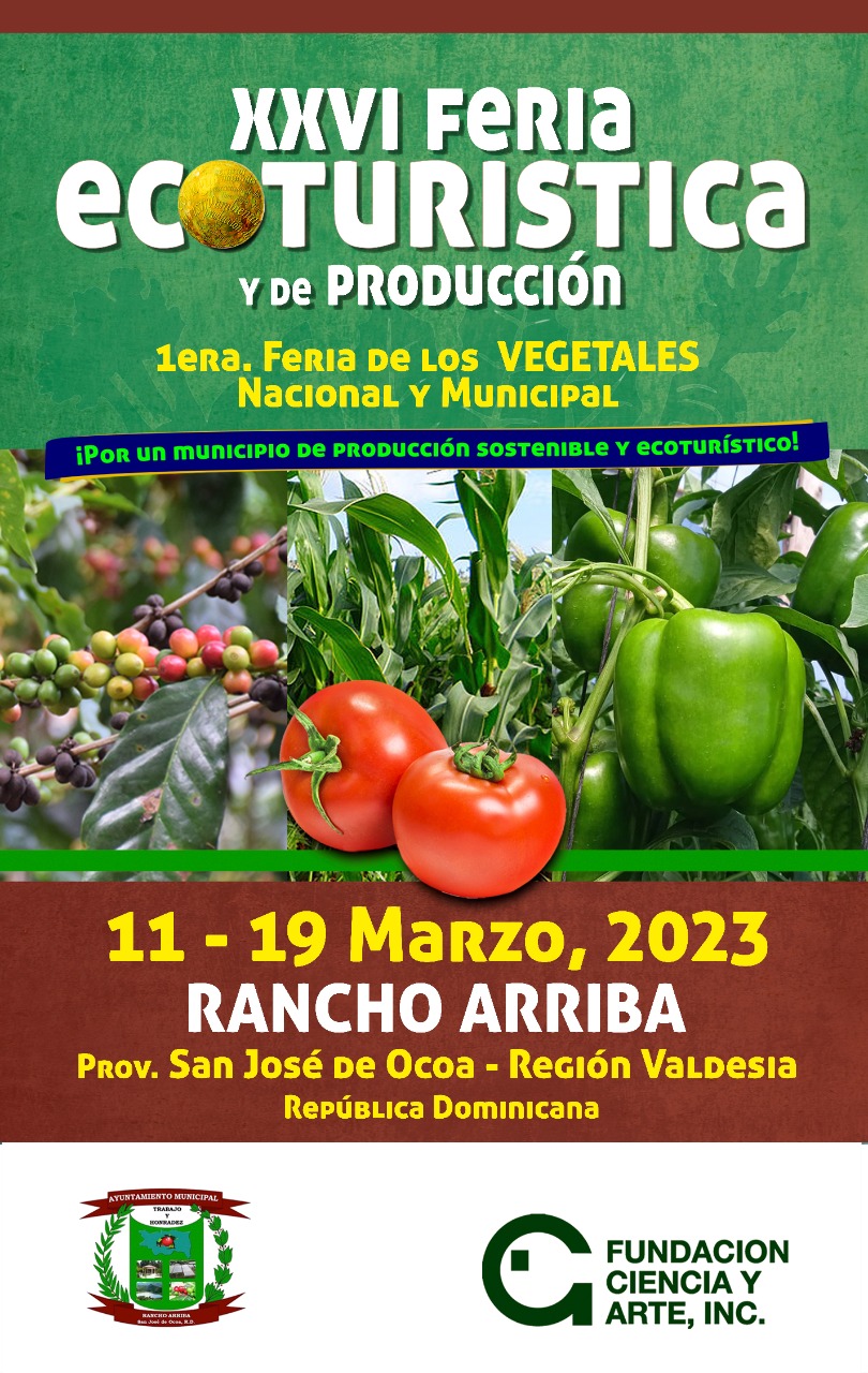 Con el lema “Por un municipio de producción sostenible y ecoturístico” La Fundación Ciencia y Arte (FCA) y la Alcaldía de Rancho Arriba, anunciaron la Primera Feria Municipal y Nacional de los Vegetales dentro de la XXVI Feria Ecoturística y de Producción, que se celebrará desde el sábado 11 al domingo 19 marzo de 2023, en el municipio de Rancho Arriba, San José de Ocoa.
