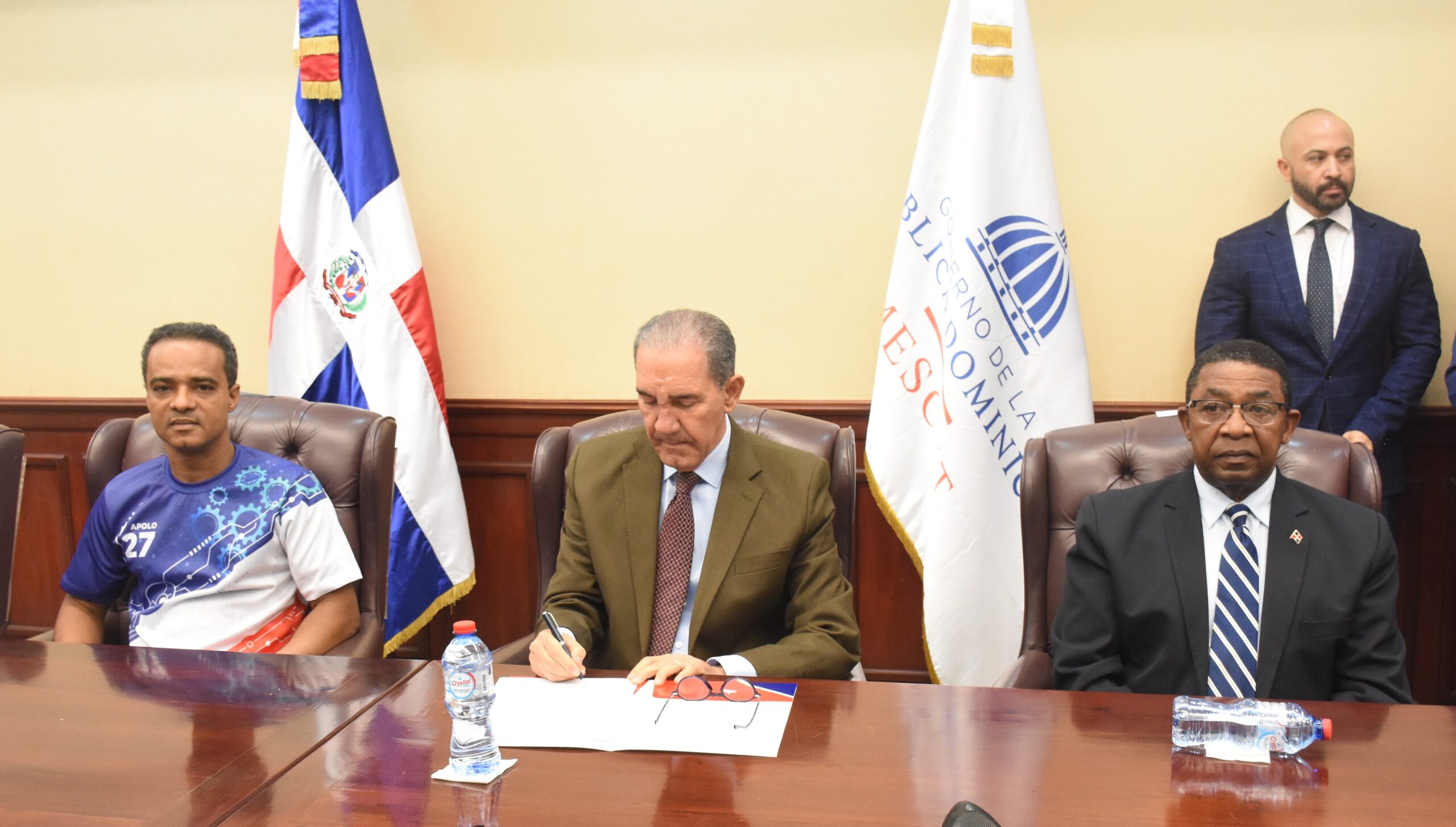La ceremonia de recibimiento contó con la presencia del viceministro del MESCYT, Genaro Rodríguez Martínez; el jefe de Gabinete, Juan F. Medina; el director de Fomento y Difusión de la Ciencia y la Tecnología, Andrés Merejo; el encargado de Innovación y Transferencia de Conocimiento, Starlin Cordero Brito; y el encargado de Vinculación de Empresas, Víctor Céspedes, entre otros funcionarios.