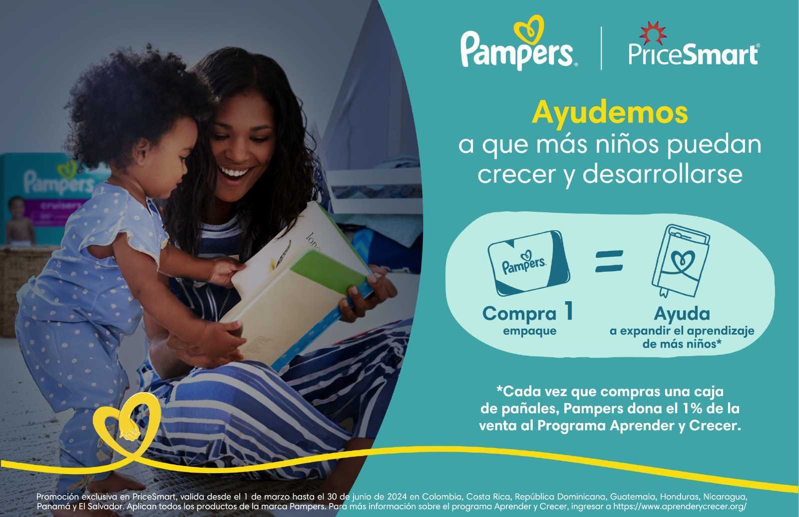 Todos podemos ser parte de la solución y contribuir a un futuro más prometedor para los niños y niñas de Latinoamérica y el Caribe. Al comprar Pampers en PriceSmart hasta el 30 de junio de 2024, la marca donará el 1% de la compra al programa Aprender y Crecer.