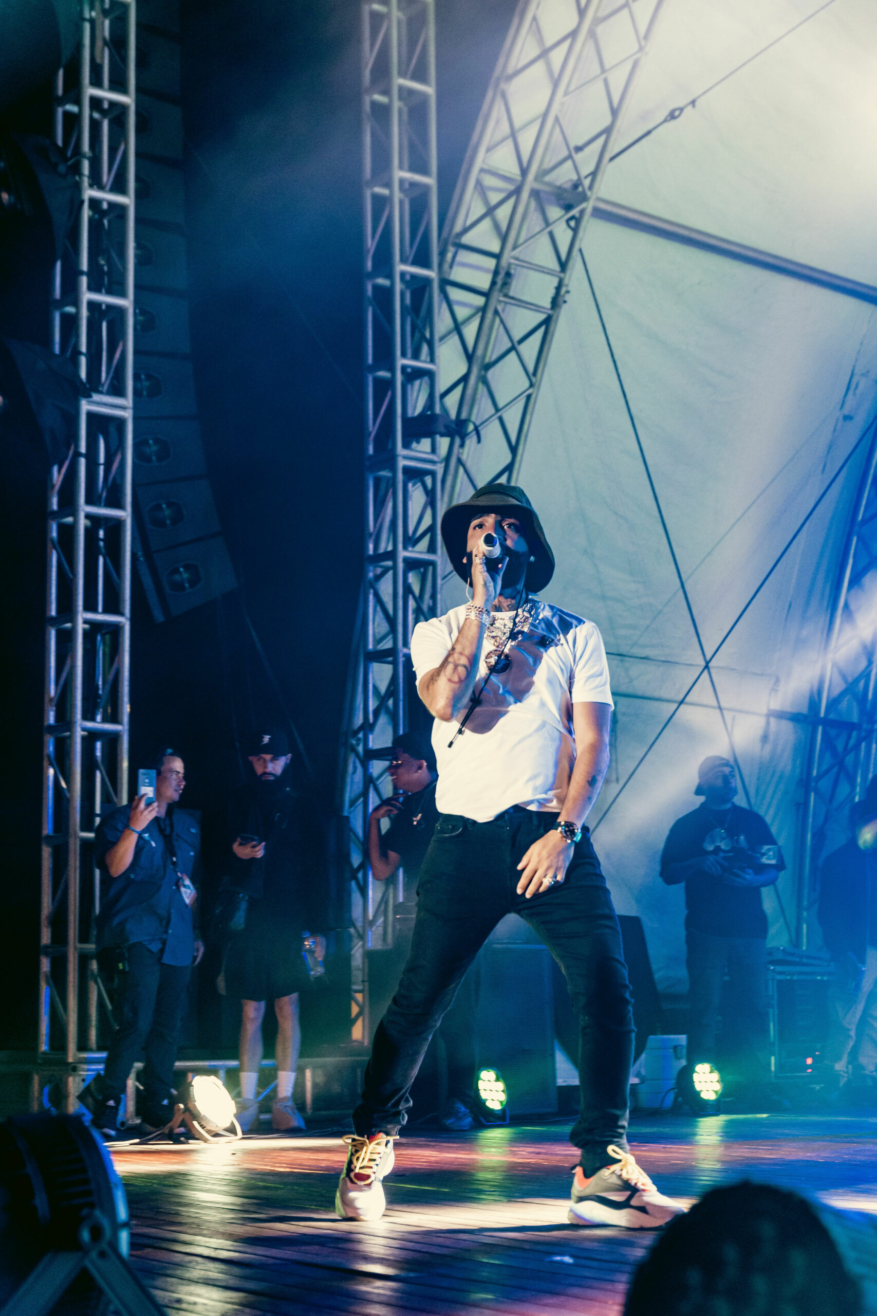 “Me gusta”, “Payaso”, “Aparentemente 2”, “Tussi”, “Satisfacción”, “Tu no vives así”, entre otras, fueron interpretadas por el artista durante la velada.