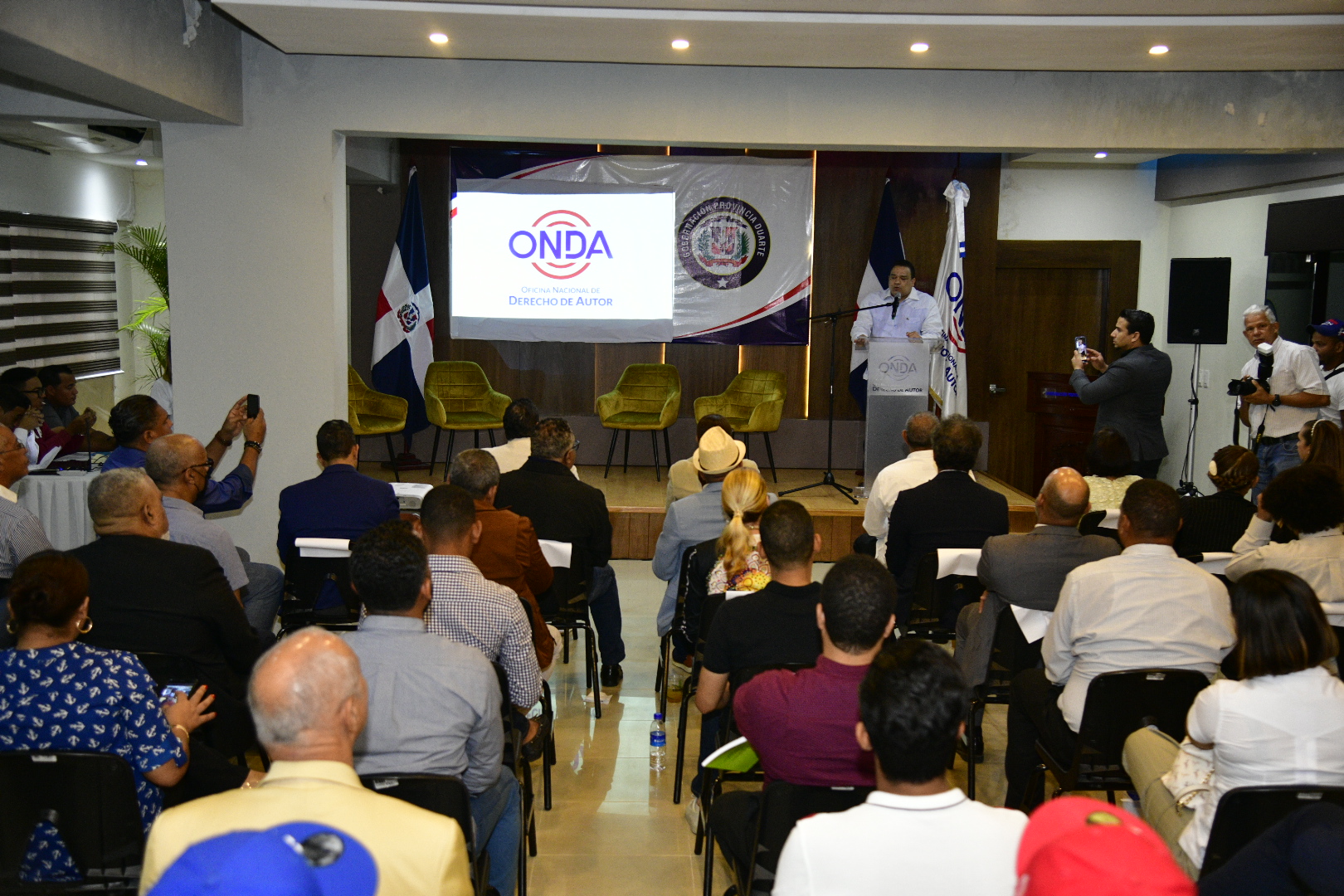 El conversatorio sobre derecho de autor fue organizado por la Oficina Nacional de Derecho de Autor (ONDA) y tuvo lugar en el salón de actos de la Gobernación de la Provincia Duarte.