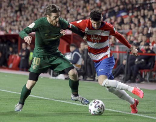 El ímpetu del Granada le llevó a rozar el gol en las postrimerías del descanso a balón a parado, pero Iñaki Williams se vistió de salvador para los suyos al sacar en la línea el remate del venezolano Yangel Herrera cuando Unai Simón ya estaba batido.