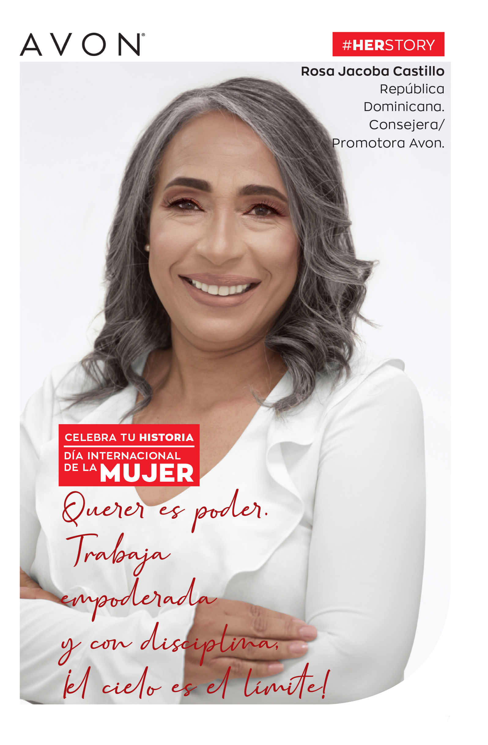 “Querer es poder. Trabaja empoderada y con disciplina. ¡El cielo es el límite” Rosa Jacoba Castillo, Representante Avon. República Dominicana.