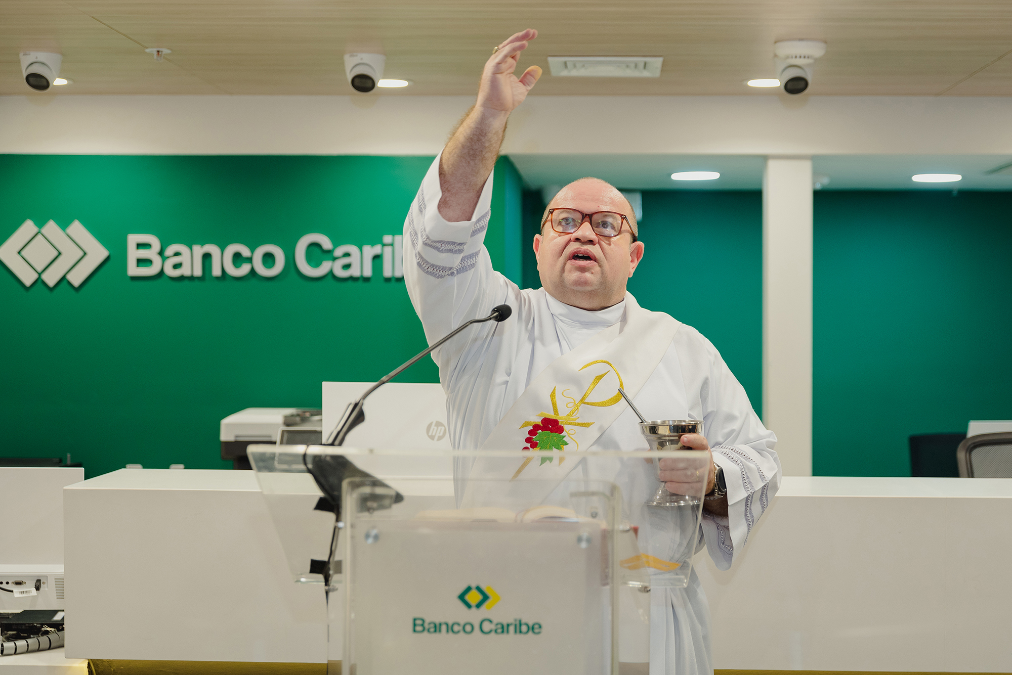 Las modernas instalaciones fueron bendecidas por el diácono Pedro Mateo e incluyó las palabras centrales de Mirjan Abreu, vicepresidente de negocios de Banco Caribe.