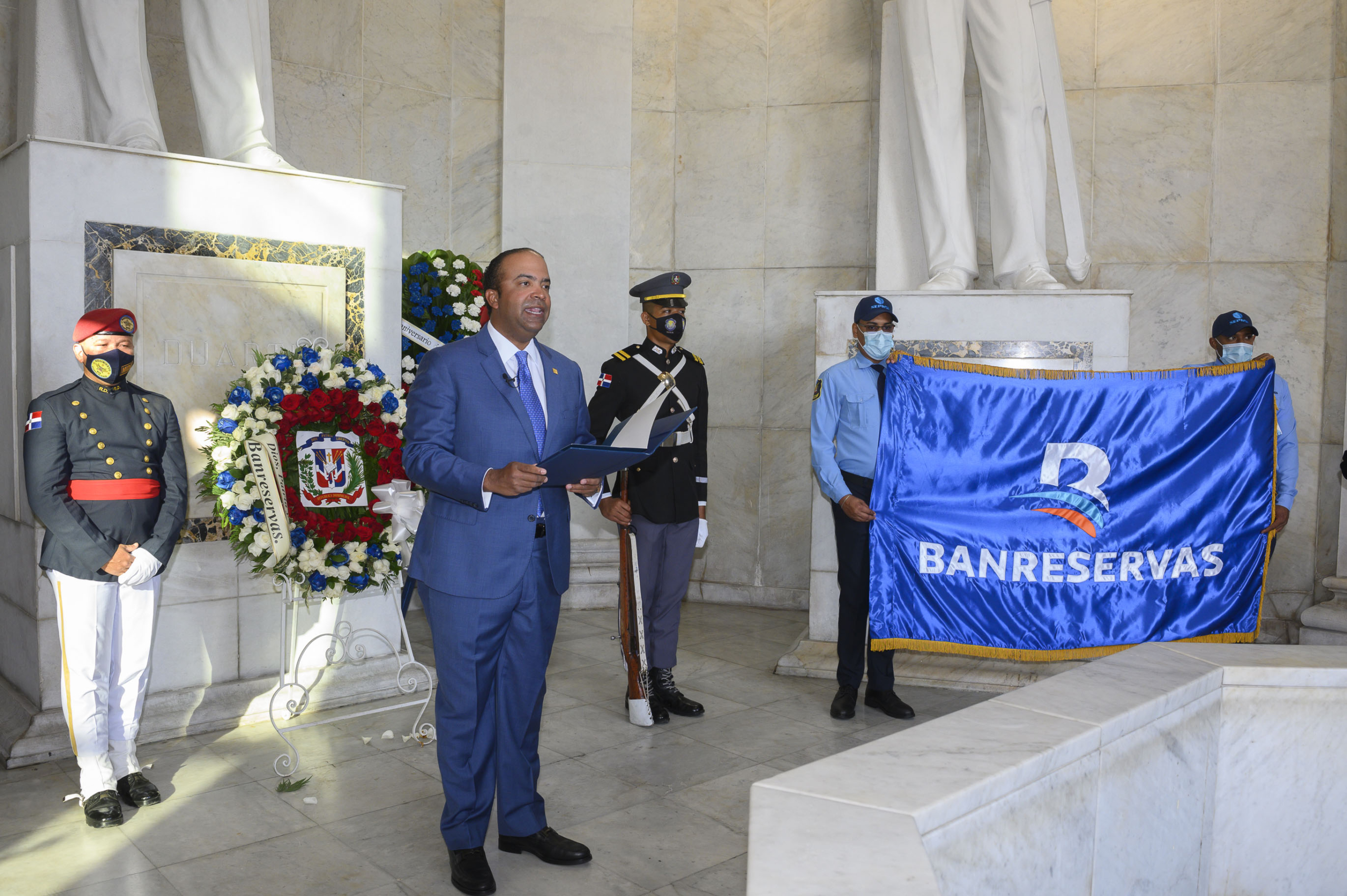 El Banco de Reservas depositó este lunes una ofrenda floral en el Altar de la Patria, para rendir homenaje a los héroes nacionales Juan Pablo Duarte, Francisco del Rosario Sánchez y Matías Ramón Mella, con motivo de conmemorarse el mes de la Patria.