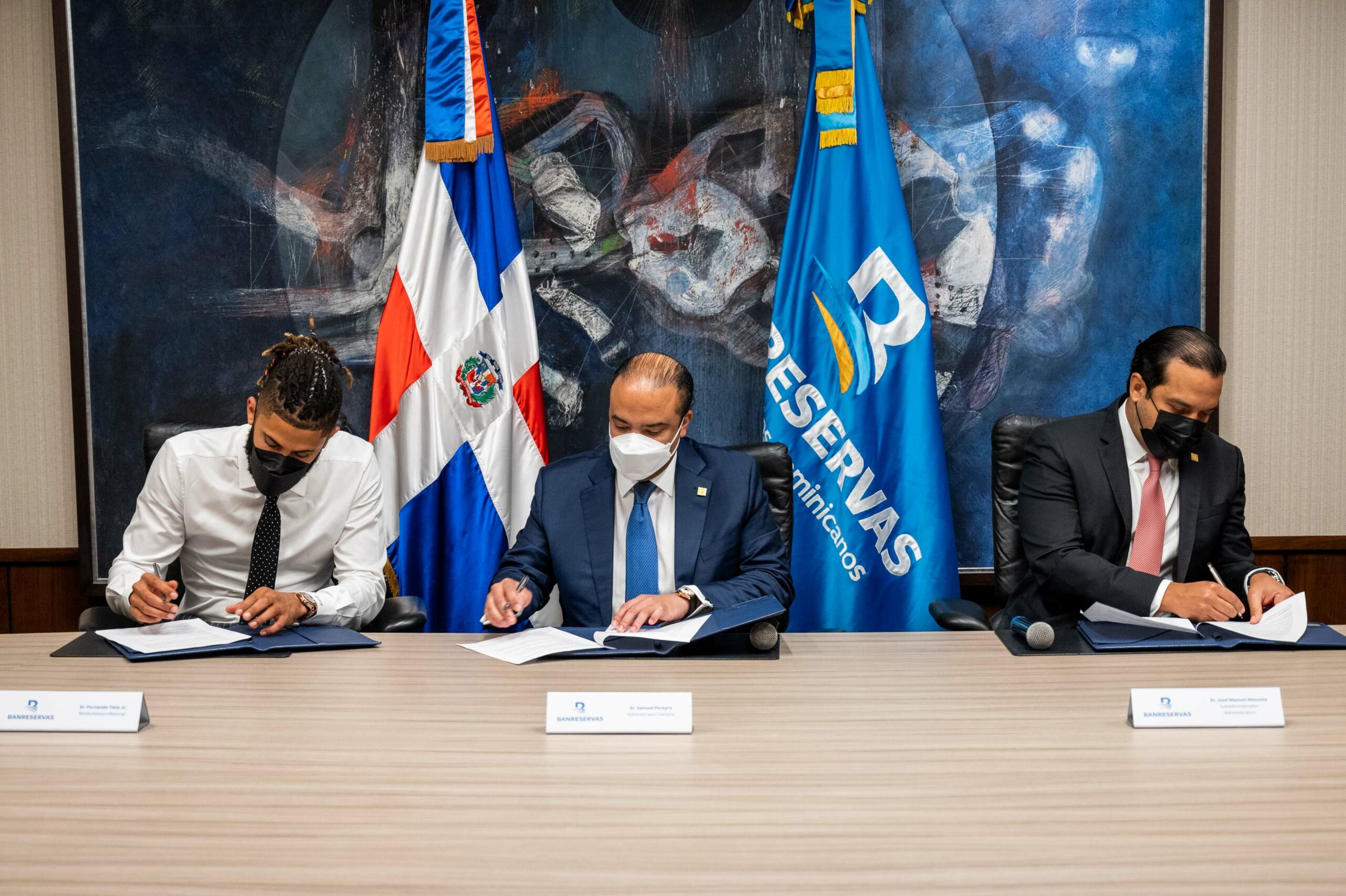 El acuerdo fue rubricado por el administrador general de Banreservas, Samuel Pereyra; el subadministrador Administrativo, José Manuel Almonte, y Fernando Tatis junior, en una actividad celebrada en el salón del Consejo de la entidad financiera.