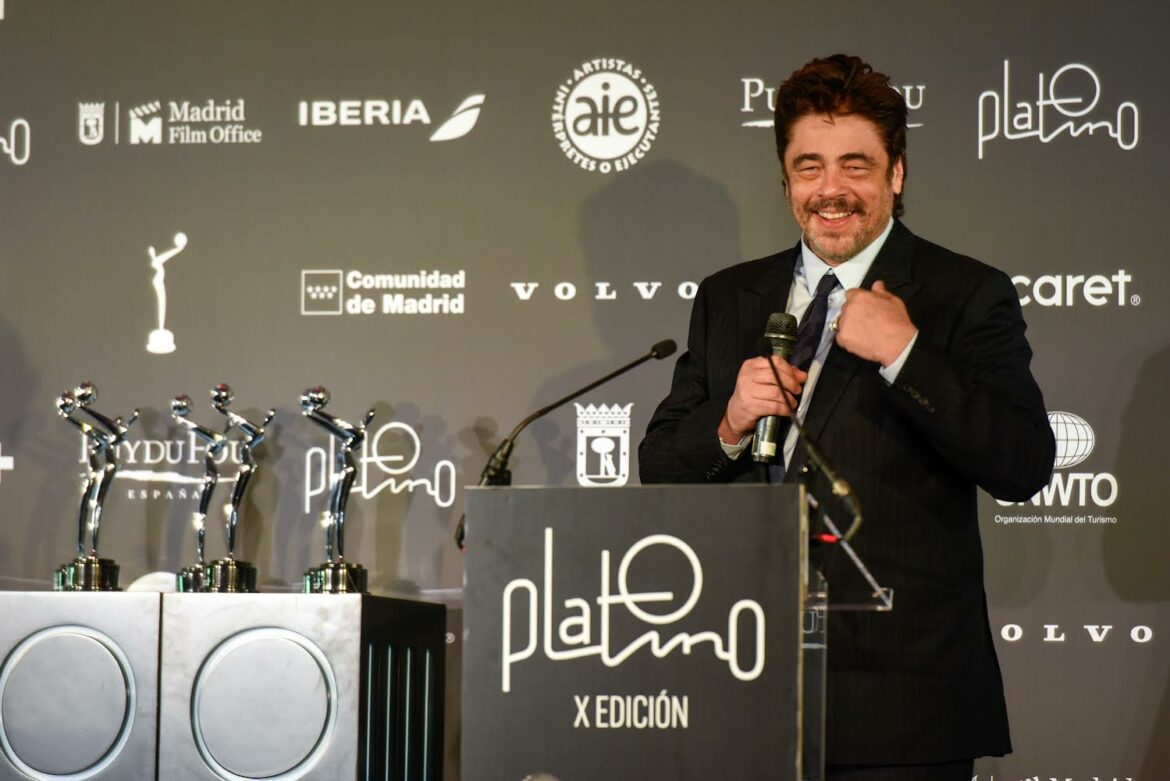 El actor puertorriqueño, Benicio del Toro, recibió el Premio PLATINO de Honor en la décima edición de los premios, celebrados en el Hotel Intercontinental de Madrid.