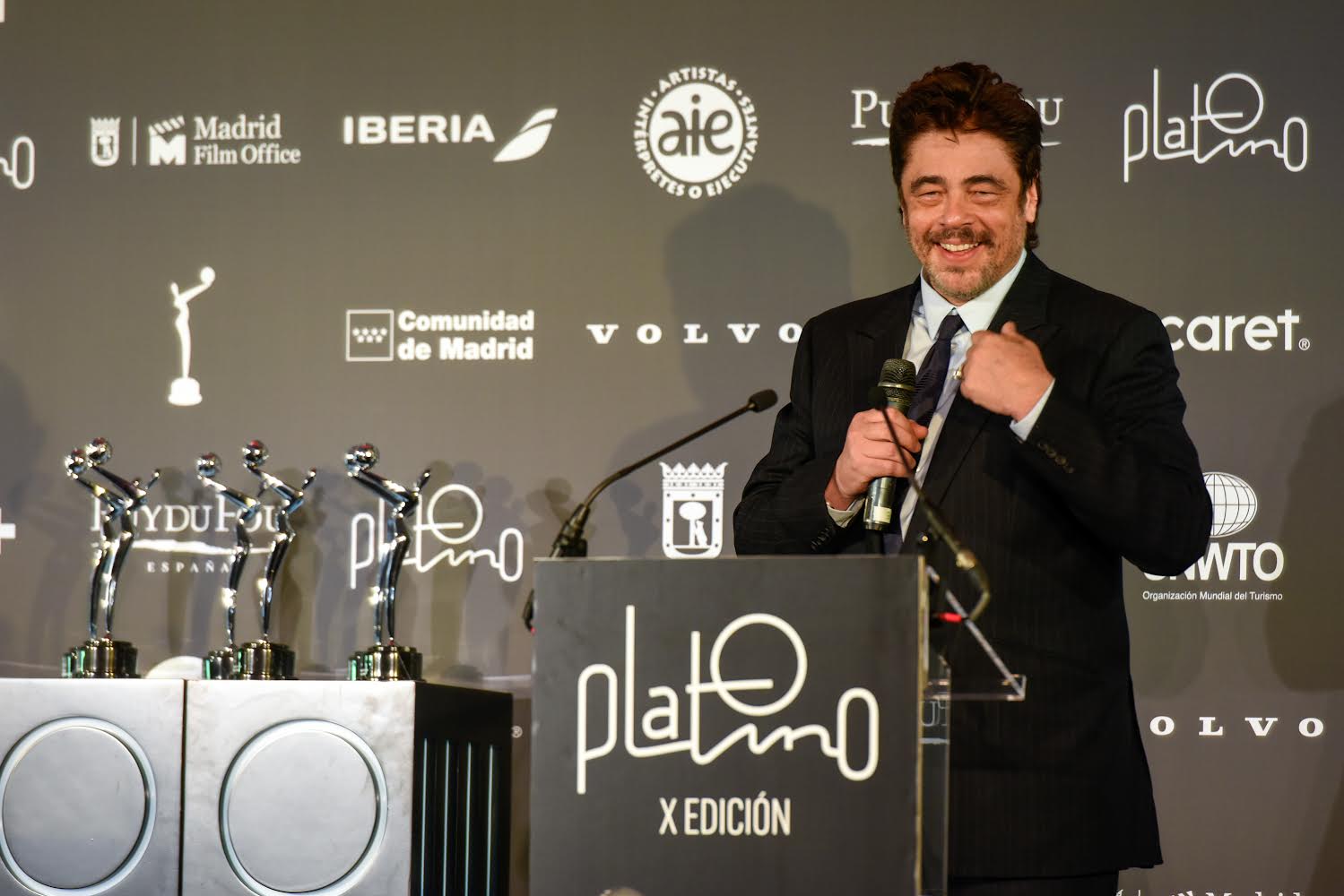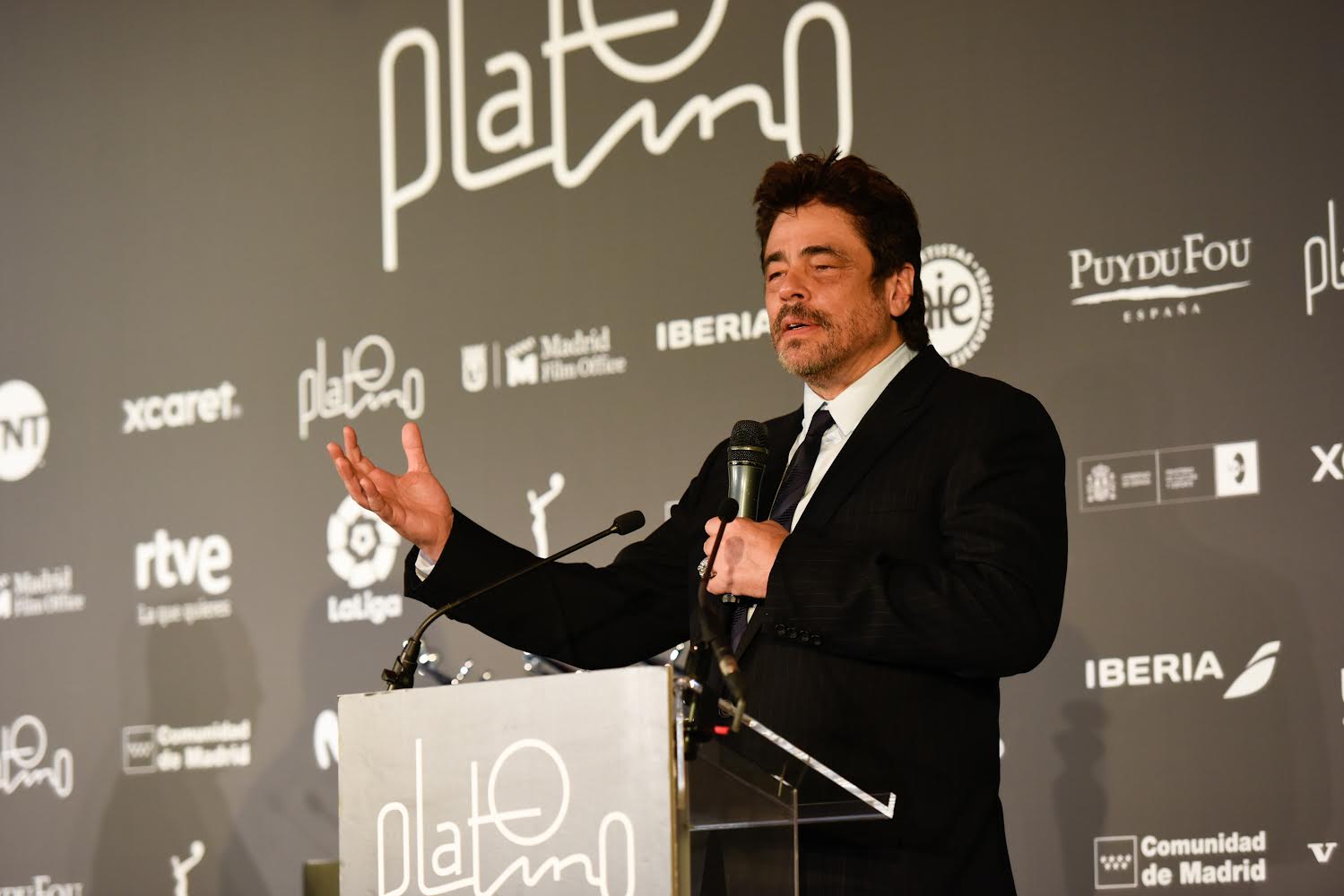 El presidente de los Premios PLATINO, Enrique Cerezo, entregará el galardón al actor en la ceremonia de entrega de premios el 22 de abril en Madrid. Durante la rueda de prensa, Cerezo destacó la carrera de Del Toro, y su compromiso con el cine iberoamericano.