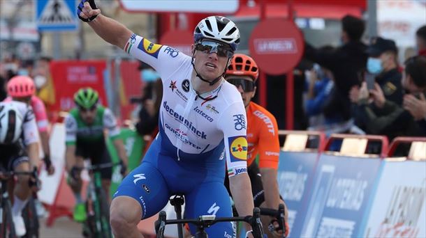 Después de ser colocado en posición por sus compañeros de Deceuninck-Quick Step, Bennett se mantuvo cerca de Jasper Philipsen en la punta y se enfiló a la meta a toda marcha para apuntarse la tercera victoria en el grand tour de su carrera.