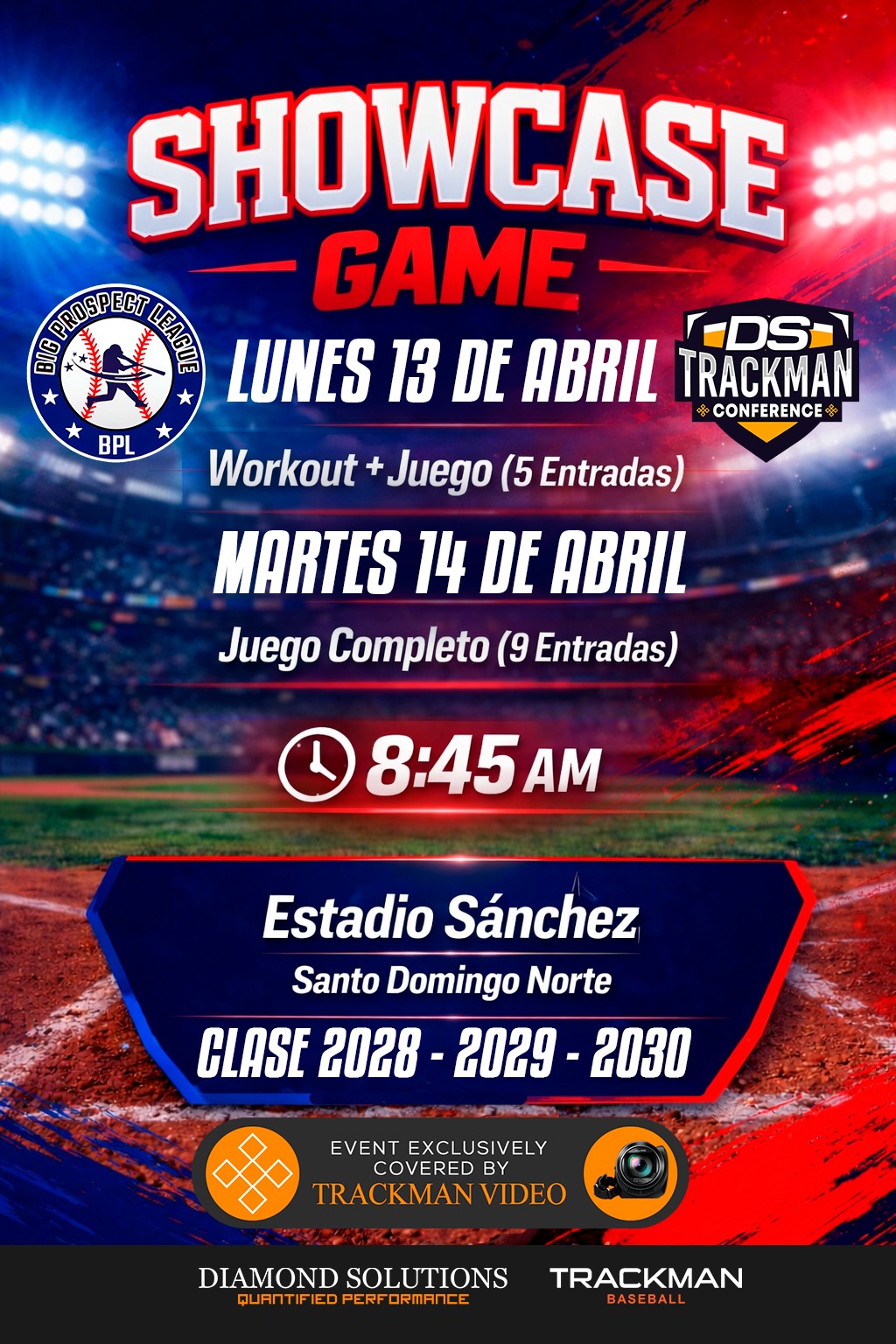 Los Jugadores pertenecientes a las clases para firmar en fecha de enero 2028-2029 y 2030 estarán mostrando sus habilidades en las evaluaciones de las 60 yardas, además las Defensivas, también su poder en dos rondas de BP y el dominio de los fundamentos en dos partidos que se estarán efectuando con pitchers en vivos los cuales por igual están en busca de oportunidades con los diferentes equipos.