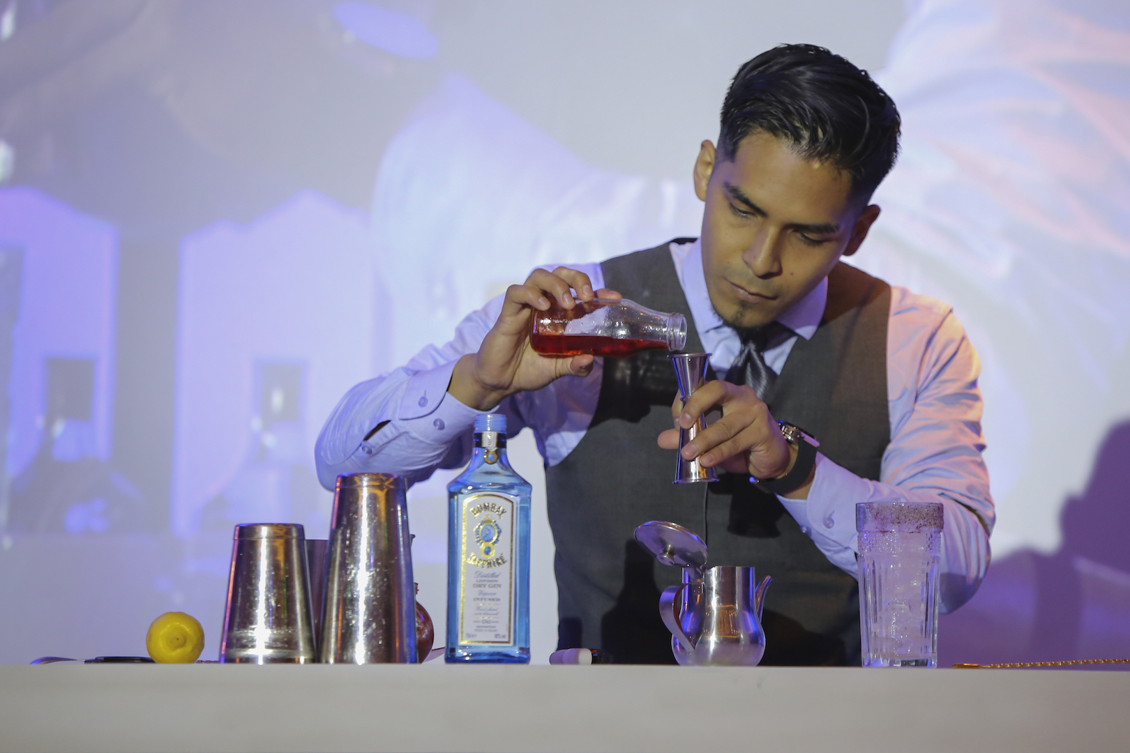 Para demostrar su potencial, los participantes tuvieron que realizar dos cocteles teniendo como base la prestigiosa ginebra Bombay Sapphire. En primer lugar, un clásico Gin Tonic con la tónica premium Fever Tree, y en segundo, un coctel personalizado a partir de la exposición de su máxima creatividad, sirviendo como foco principal para definir al ganador de la competencia. Estos cocteles fueron evaluados por un jurado compuesto por Humberto Cantú, embajador local de la marca Bombay Sapphire; Carlos Mejía, ganador del MIB 2016; y Ricardo Nava, embajador latinoamericano de Bombay Sapphire.