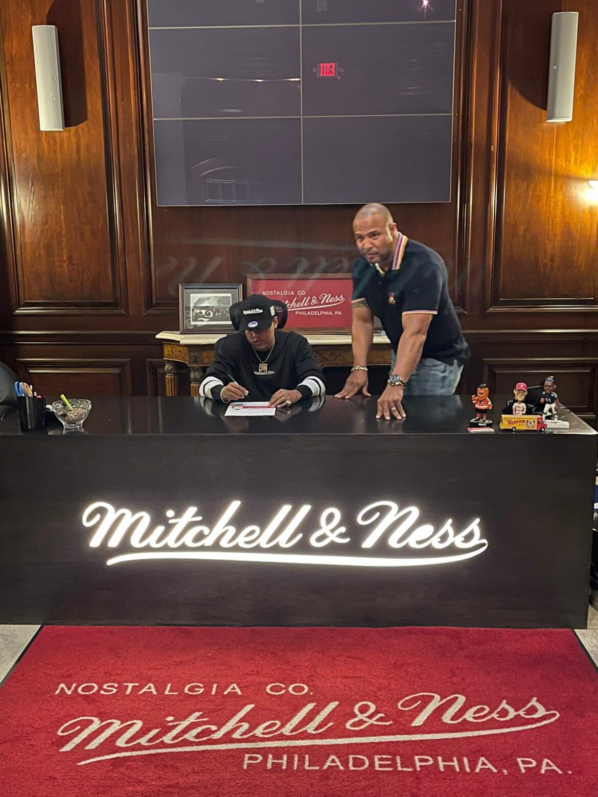 Al estampar su firma en las oficinas de Mitchell & Ness, The King de la música urbana, como se le conoce, reveló que «la ropa que me han visto en los últimos meses fue hecha exclusivamente para mí, y forman parte de la línea que saldrá en 2022».