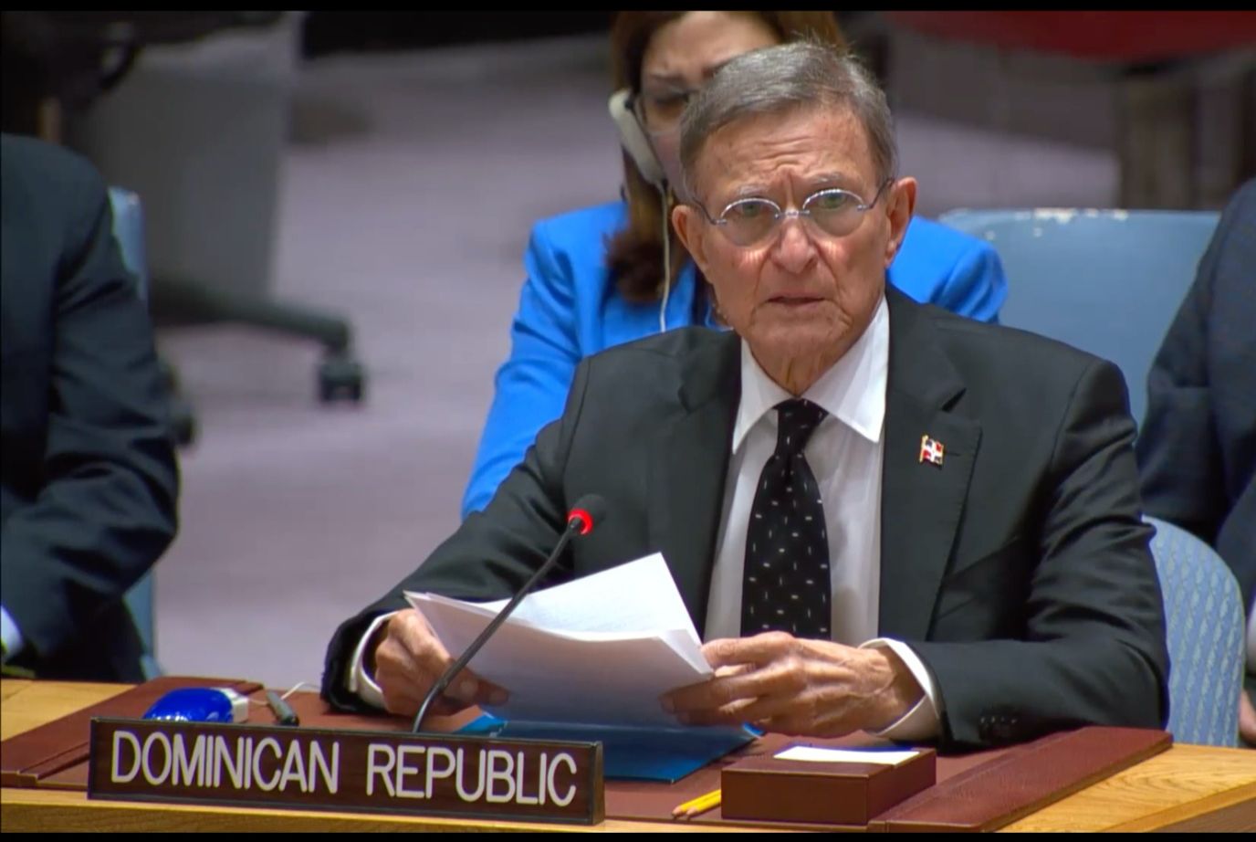 Nueva York, Estados Unidos.- El canciller Roberto Álvarez advirtió de manera enfática ante el Consejo de Seguridad de la Organización de las Naciones Unidas (ONU) que “República Dominicana ha mantenido la solidaridad con Haití a pesar del sacrificio que esto implica. Ahora bien, no podemos ir más allá de nuestras posibilidades materiales y menos aún adoptar medidas que atenten contra la estabilidad y seguridad de nuestro país. Simplemente no lo permitiremos, pídalo quien lo pida”.