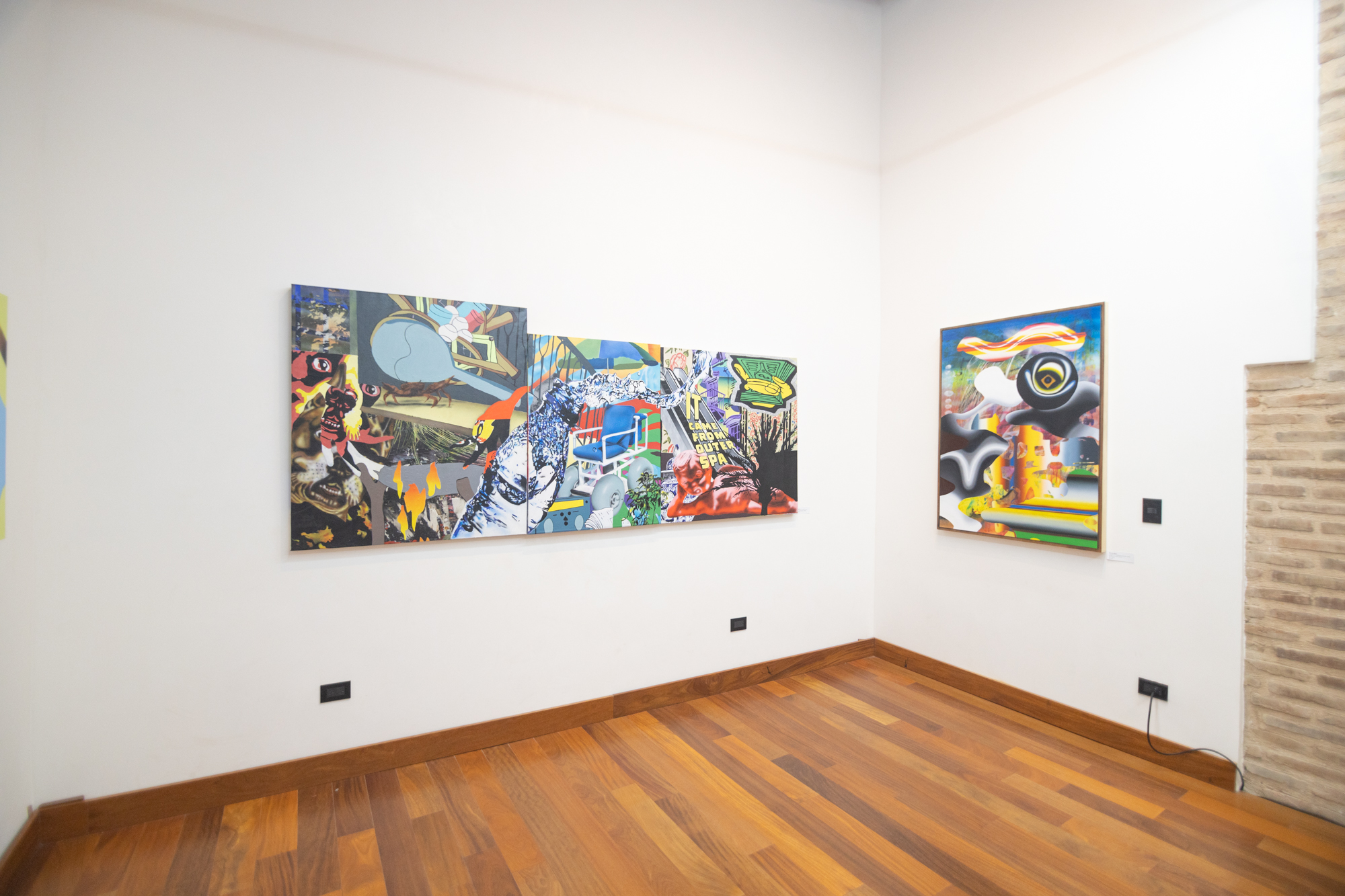 La primera sala está dedicada a exponer las obras más recientes del artista local Manuel Mera, con una serie de trabajos que muestran la evolución del artista. Mera explicó que sus obras son un reflejo de un diálogo humano con la multi realidad de los medios digitales en un mundo rodeado de avances científicos pero lleno de contradicciones no resueltas.