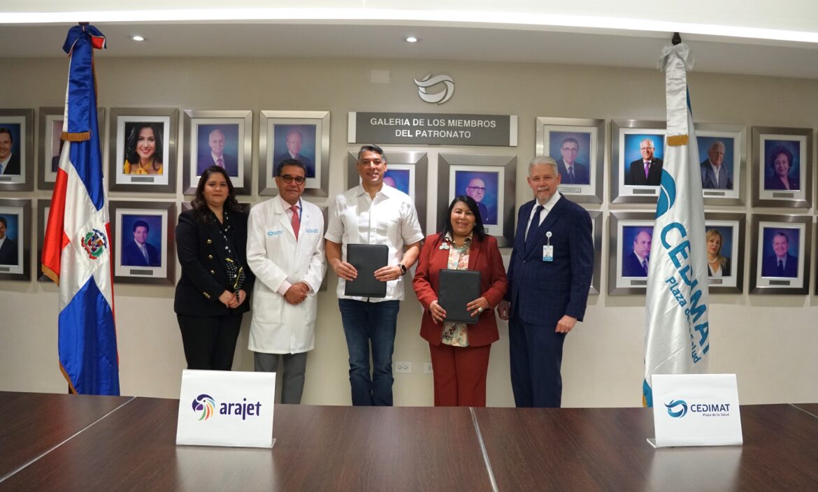 Los Centros de Diagnóstico y Medicina Avanzada y de Conferencias Médicas y Telemedicina (CEDIMAT) y la aerolínea Arajet han firmado un acuerdo estratégico para promover el turismo médico en la República Dominicana. El convenio, firmado por Milagros Ureña, directora general de CEDIMAT, y Víctor Pacheco Méndez, CEO y fundador de Arajet, tiene como objetivo facilitar el acceso a servicios médicos avanzados y traslados internacionales cómodos y seguros para pacientes extranjeros.