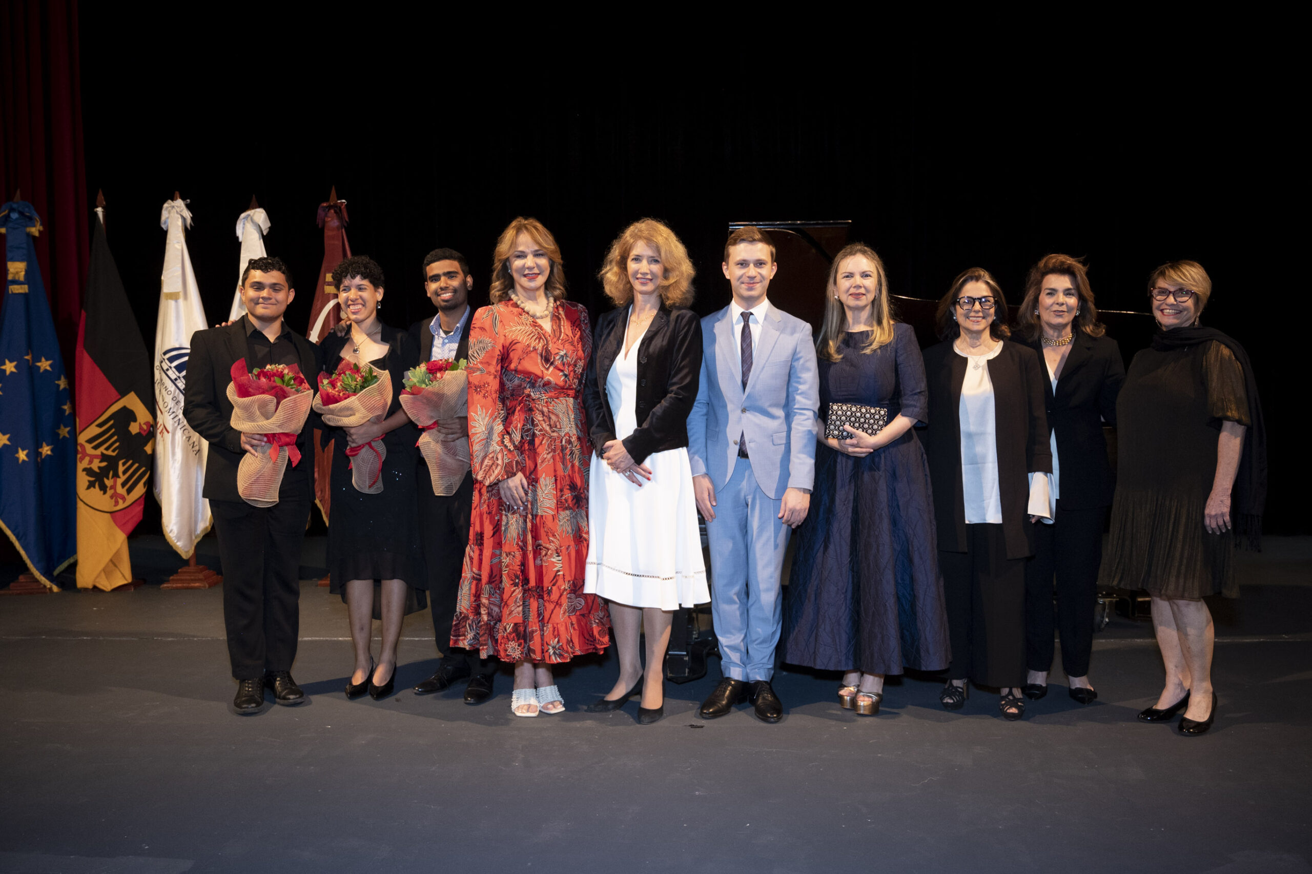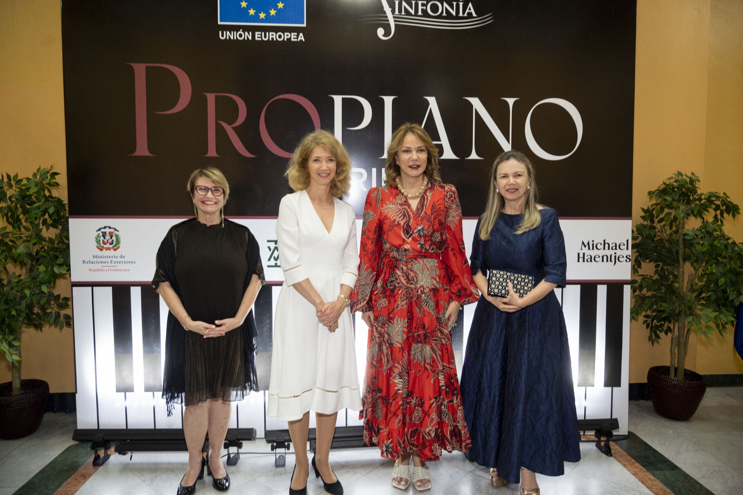 El evento contó con la presencia de importantes figuras, incluyendo a Katja Afheldt, embajadora de la Unión Europea en la República Dominicana; Milagros Germán, ministra de Cultura; y Margarita Miranda de Mitrov, presidenta de la Fundación Sinfonía.