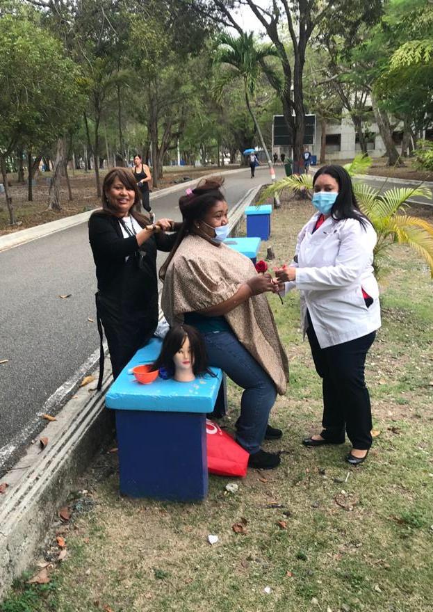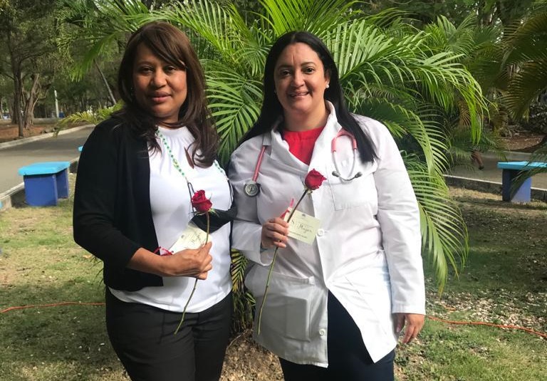 Vestidas de enfermera, médico, estilista, cocinera y figuras de nuestra historia como Mamá Tingó y María Montés, entregaron una flor a cada caminante, de manera sorpresiva, gesto que fue valorado por las féminas.