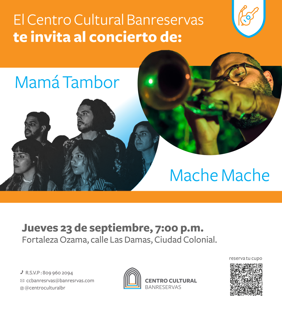 El Centro Cultural Banreservas invita al concierto con las bandas Mamá Tambor y Mache Mache, a las 7:00 de la noche, en la Fortaleza Ozama.