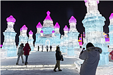 HARBIN, 2 febrero, 2023 (Xinhua) — Vista aérea del 1 de febrero de 2023 de personas visitando el parque temático del Mundo de Hielo y Nieve, en Harbin, en la provincia de Heilongjiang, en el noreste de China. Harbin, conocida como la «ciudad de hielo» de China, ha atraído a muchos turistas durante la temporada turística de invierno.
