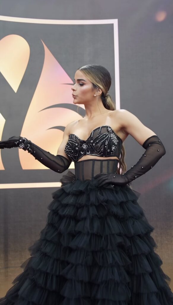Durante la cobertura, su aparición generó alta interacción en redes sociales, consolidando la conversación digital alrededor de su look y reafirmando el papel de las plataformas como extensión inmediata del evento televisivo.