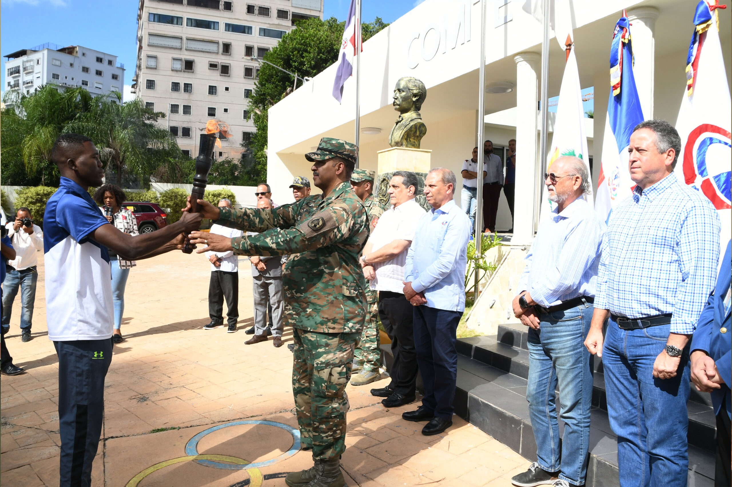 El breve acto de recorrido de la antorcha de los Juegos Deportivos Militares y Policiales se llevó a cabo en la explanada frontal del alto organismo olímpico.