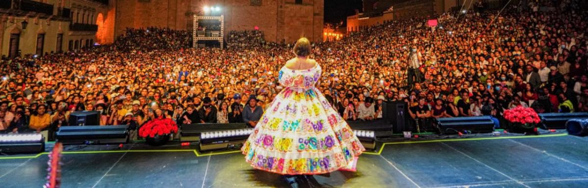 De esta manera, la extraordinaria intérprete de música mexicana arribó al máximo escenario de la cultura en Zacatecas, que del 8 al 17 de abril, congregó a miles de zacatecanos y visitantes que disfrutaron de las más de 200 actividades que se desarrollaron de manera satisfactoria, tal como fueron programadas, a lo largo de 10 días, en más de 25 foros.