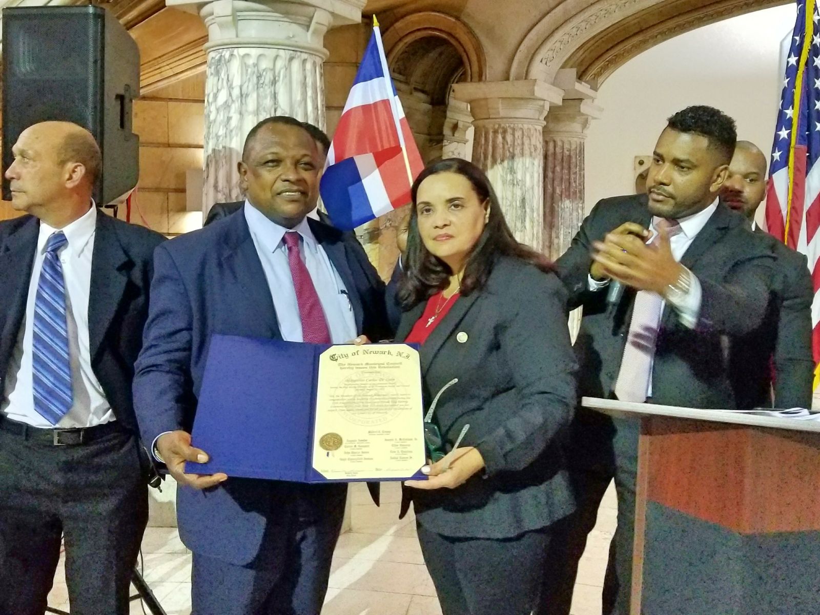 El pergamino de reconocimiento fue emitido por el Concejo Municipal de la Ciudad de Newark, firmado por su presidenta Mildred C. Crump, quien elogió el desarrollo positivo de la comunidad dominicana en Newark.