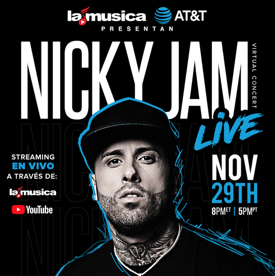 No te pierdas esta presentación con NICKY JAM, a través de la aplicación LAMUSICA y en el canal de NICKY JAM en YouTube.