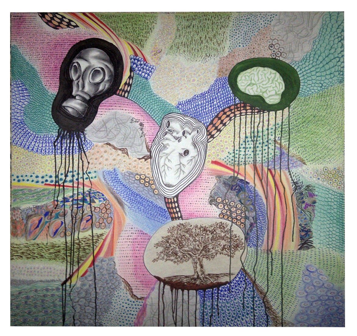 Agrega que en ocasiones siente estar ante el escenario de un épico concierto del mejor Rock, debido a la graficación que logra plasmar en tela y papel con notable sentido y capacidad composicional para crear una atmósfera expositiva crítica, y en ocasiones angustiosa y dramática como cuando aborda el tema de la guerra, el medio ambiente, el calentamiento global y la contaminación ambiental.