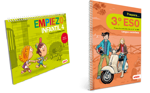 Para la etapa de Educación Infantil, edebé ofrece la colección Empiezo, que sigue el estilo tradicional de la etapa Infantil, con formato apaisado de fichas, adhesivos y actividades. También hay un cuaderno de la colección Empiezo para primero de Primaria con el mismo formato tradicional. Por su parte, la colección Prepara propone cuadernos para todos los cursos de primaria y secundaria .
