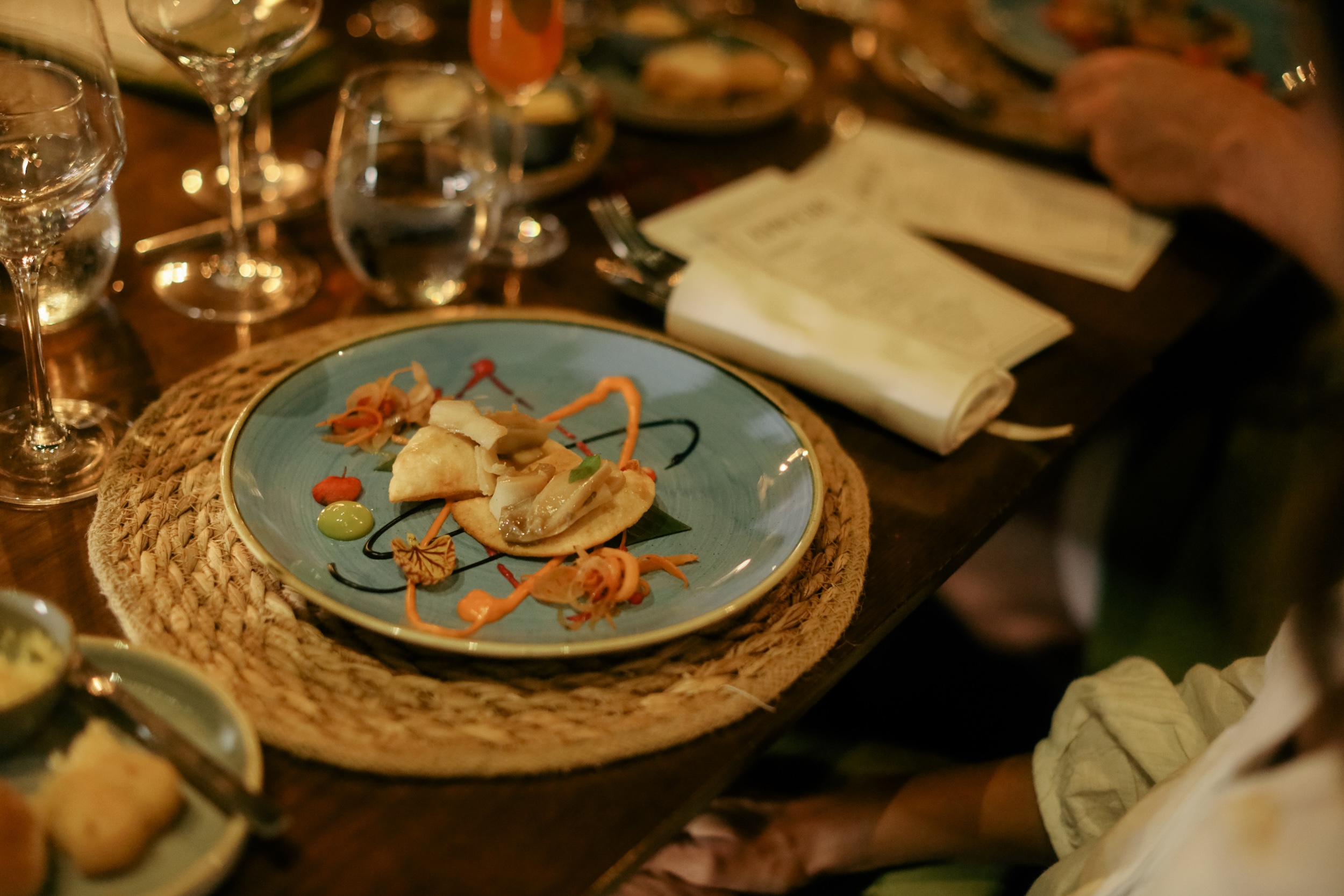 La segunda jornada fue el punto culminante: una cena a ocho tiempos en el restaurante Kárnica, concebida como una conversación sin palabras entre Estévez y Wu. Cada plato fue una página de un libro donde se escribía, en paralelo, la historia ancestral del Caribe y la sofisticación milenaria de Japón.