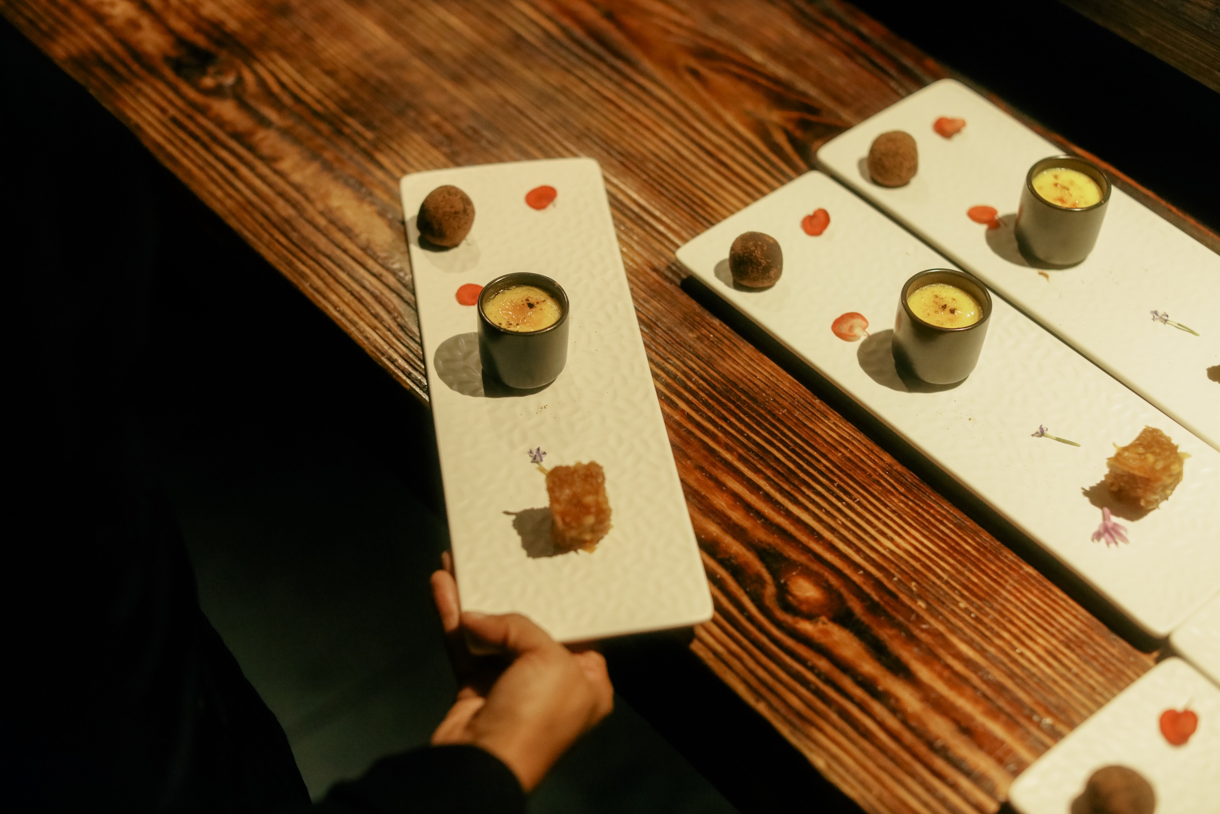 Para cerrar, un dúo de postres que hablaban en clave poética: el trío criollo de jalao, majarete y trufas de cacao, seguido por la torrija de crema de lima, sopa de chocolate blanco y pimienta de Sichuan. Un final de “jartura”, a la altura de un“ ”viaje” inolvidable .