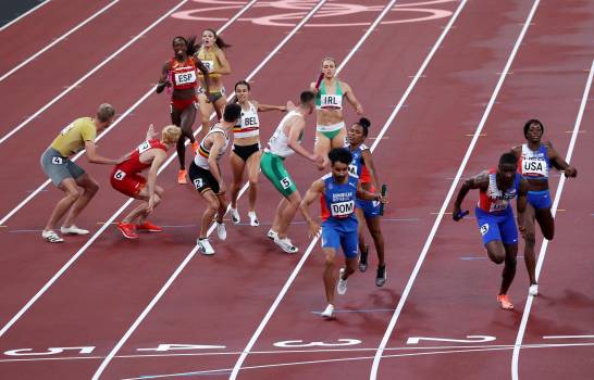 Los quisqueyanos, que establecieron un nuevo récord nacional, registraron un tiempo de tres minutos, 12 segundos y 74 décimas (3:12.74), quedando detrás de Estados Unidos (3:11.39), que también impugnó una descalificación y también salió airoso en el reclamo. Junto a los dominicanos y estadounidenses competirán por medalla las representaciones de Polonia, Holanda, Jamaica, Gran Bretaña, Bélgica e Irlanda. La cuarteta quisqueyana quedó número dos en su heat y sexto en sentido general, tras el resultado. La competición de relevos mixtos 4×400 hace su aparición por primera vez en unos Juegos Olímpicos.