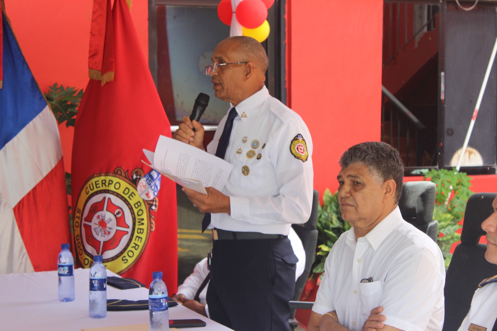 Posteriormente, en la sede del Cuartel General del Cuerpo de Bomberos, ubicado en la Zona Industrial de Herrera, se desarrolló el acto central con la presencia del alcalde de Santo Domingo Oeste, Francisco Peña, así como del intendente general Luis García y otras autoridades municipales.