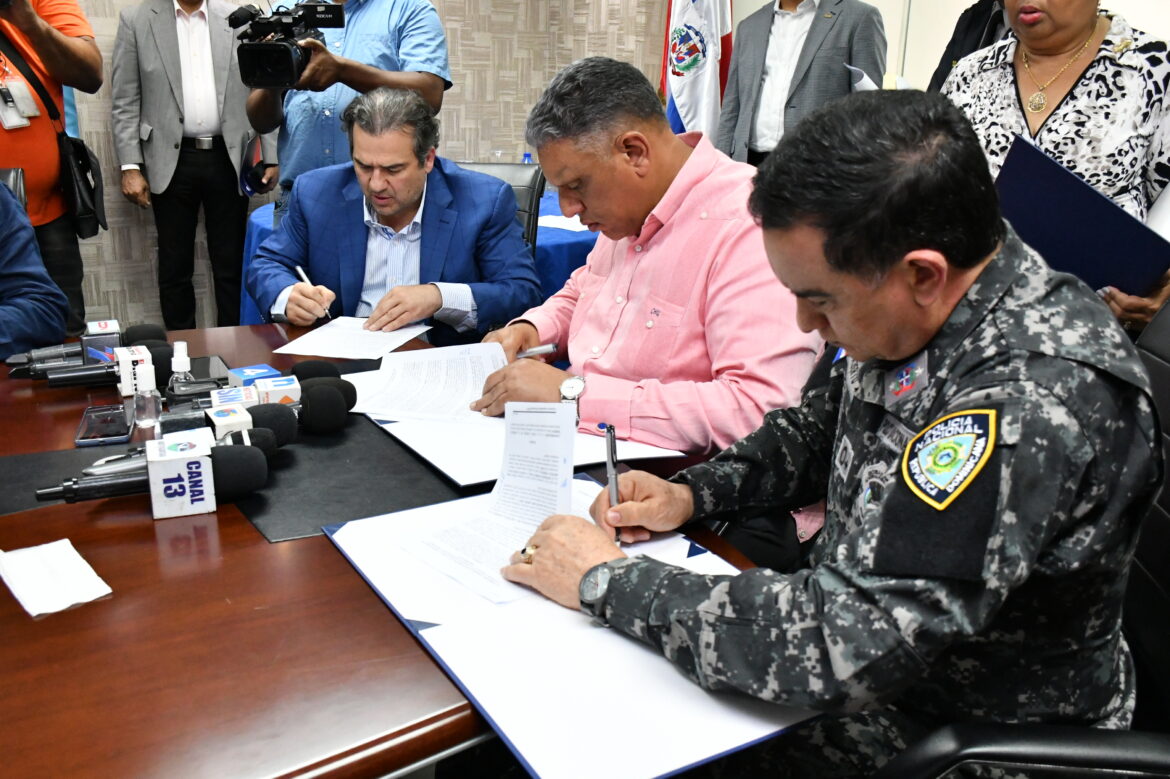 Mediante el convenio rubricado por el ministro de Interior, Jesús Vásquez Martínez, y el director de la Policía, mayor general Eduardo Alberto Then, de parte de las autoridades, y por las empresas Pedro Lama, de Plaza Lama; María del Carmen Ramos, del Grupo Ramos, y José Manuel Rodríguez, de Supermercados Olé, e Iván García, presidente de la FDC, respectivamente, las partes se comprometieron de forma conjunta a implementar el acuerdo de cooperación y apoyar el cumplimiento de los compromisos interinstitucionales asumidos por cada institución.