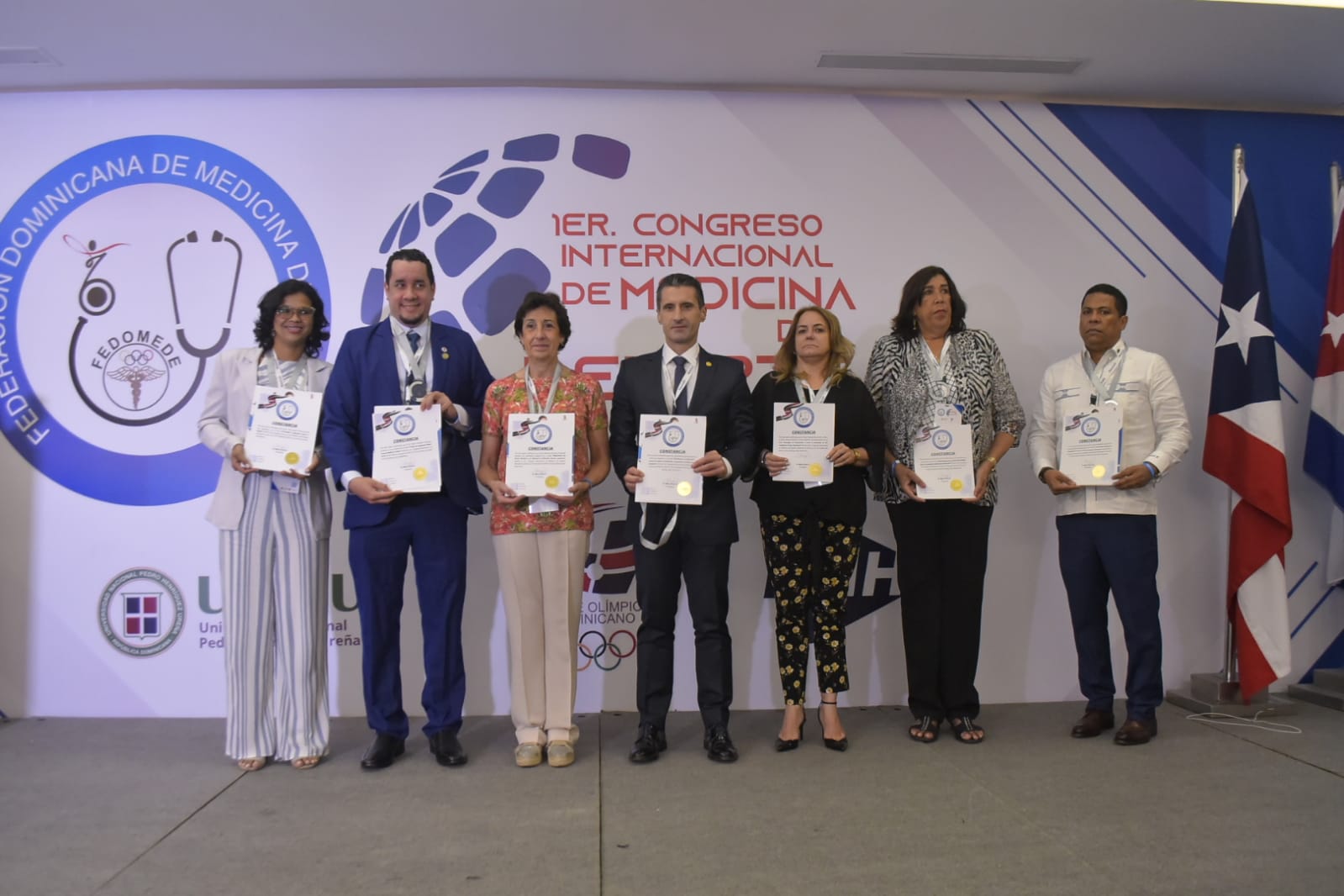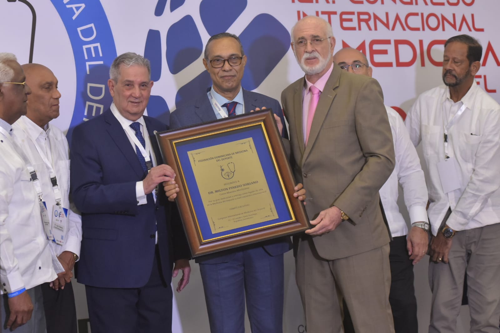 «Valoramos las presentaciones de los invitados internacionales con reconocida calidad mundial, así como el progreso de los profesionales dominicanos de la salud, que también realizaron destacadas conferencias», dijo Pinedo, quien recibió un inesperado reconocimiento de una placa otorgada por el comité ejecutivo de la entidad que preside, que lo distinguió como «maestro meritísimo de la medicina del deporte por sus aportes a la medicina del deporte y la lucha contra el dopaje», se lee en la placa.