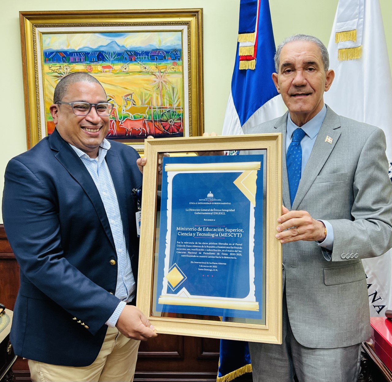 Tras el acto de reconocimiento al titular del Mescyt, la Dirección General de Ética e Integridad Gubernamental (DIGEIG) presentó la primera iniciativa de Política Nacional de Datos Abiertos de la República Dominicana (PNDA-RD) con la que se facilitará el acceso, uso, reutilización y redistribución de las informaciones públicas, con plena confianza en que tendrá un efecto transformador en la rendición de cuentas, el debate y la participación ciudadana.