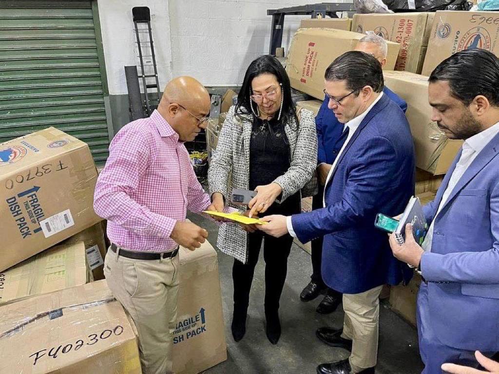La placa de reconocimiento fue recibida de las manos de Fátima Henríquez, presidenta de la Federación de Consolidadores de Carga de la República Dominicana (Fecodeca), que agrupa a 105 empresas de envíos que operan en los Estados Unidos y en República Dominicana.