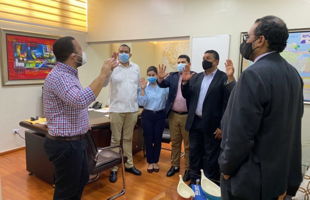 La juramentación fue desarrollada en el despacho del director, en donde los miembros del comité se comprometieron a trabajar para dar fiel cumplimiento a lo establecido en la Ley 340-06 y su reglamento de aplicación No. 543-12.