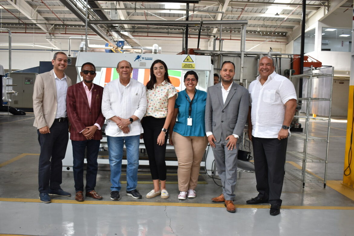 Franklin Lithgow director de inversiones y relaciones gubernamentales, Anaima Pérez; directora de planta y Laura Taveras gerente de gestión humana, realizaron un recorrido con el director del INFOTEP por las instalaciones de la empresa, ubicada dentro parque industrial de zonas francas Víctor Espaillat Mera.