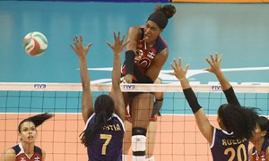 Las criollas no cedieron nunca y ampliaron la ventaja 14-10 con un buen juego defensivo de Annerys Valdez y Gina Mambrú, quienes se constituyeron en pared humana, bloqueando a sus rivales.