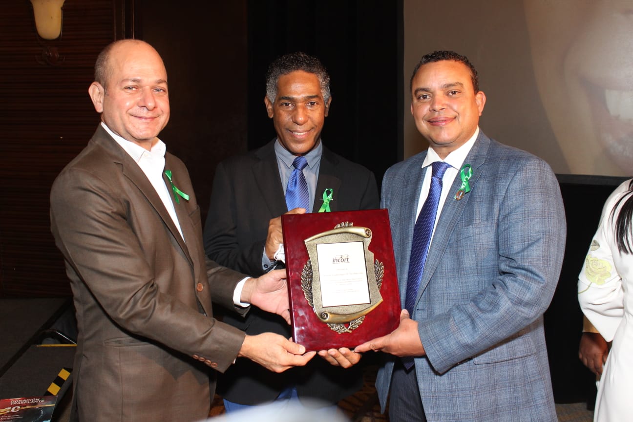 El Director del Incort, Fernando Morales Billini, entregó la placa de reconocimiento al director del hospital, doctor Julio Landrón junto al subdirector Académico doctor Camilo García y el doctor David Cuevas, coordinador de trasplante del centro hospitalario, por mantenerse a lo largo de los años como el centro de salud mayor generador de donante de órganos y tejidos.