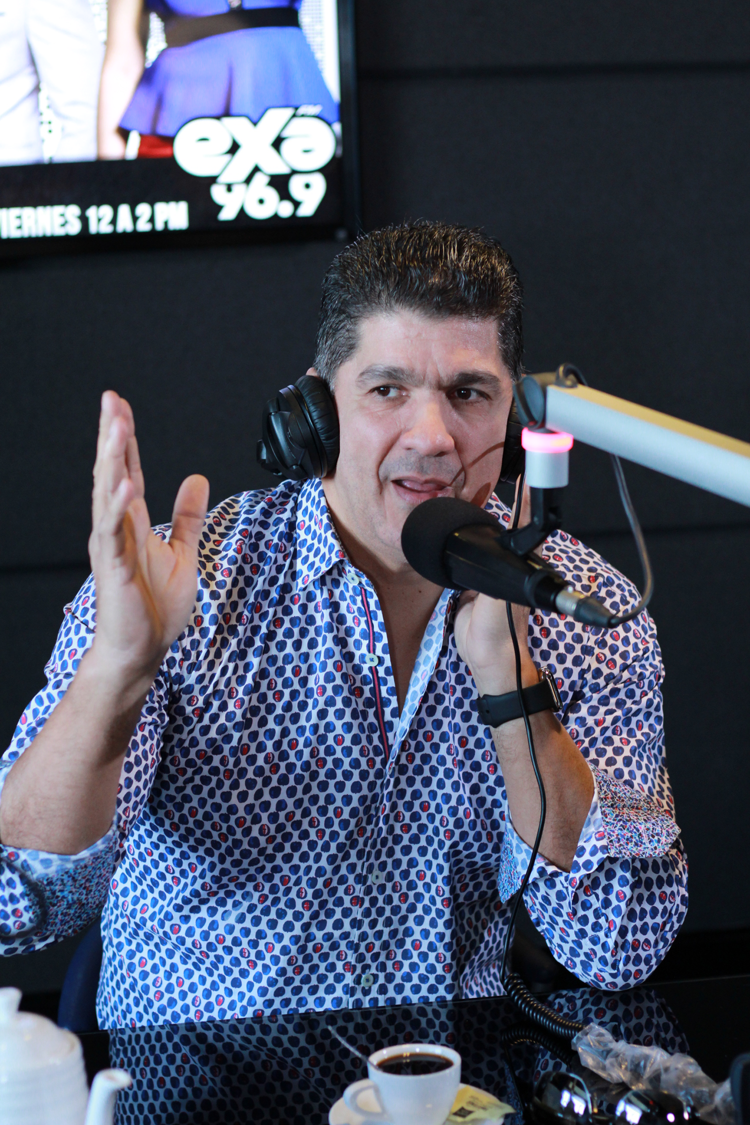 EN JAQUE RADIO se transmite de lunes a viernes de 12 a 2 de la tarde por EXA 96.9 FM, bajo la conducción de Robert Llaverías, Mandy en Gajos e Iohan Fuertes.